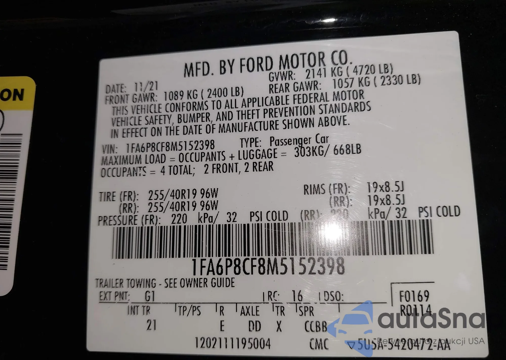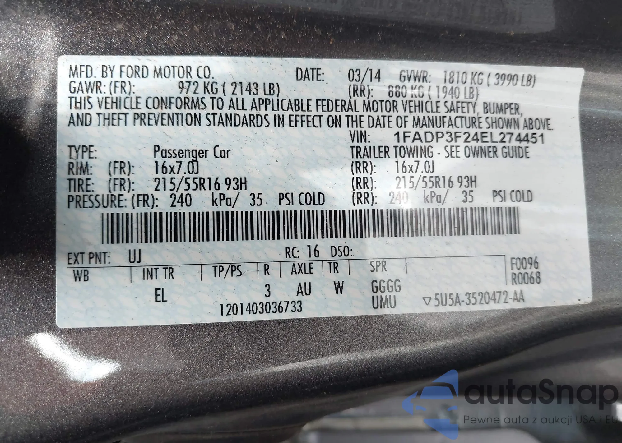 LOT: 42958381 VIN: 1FADP3F24EL274451