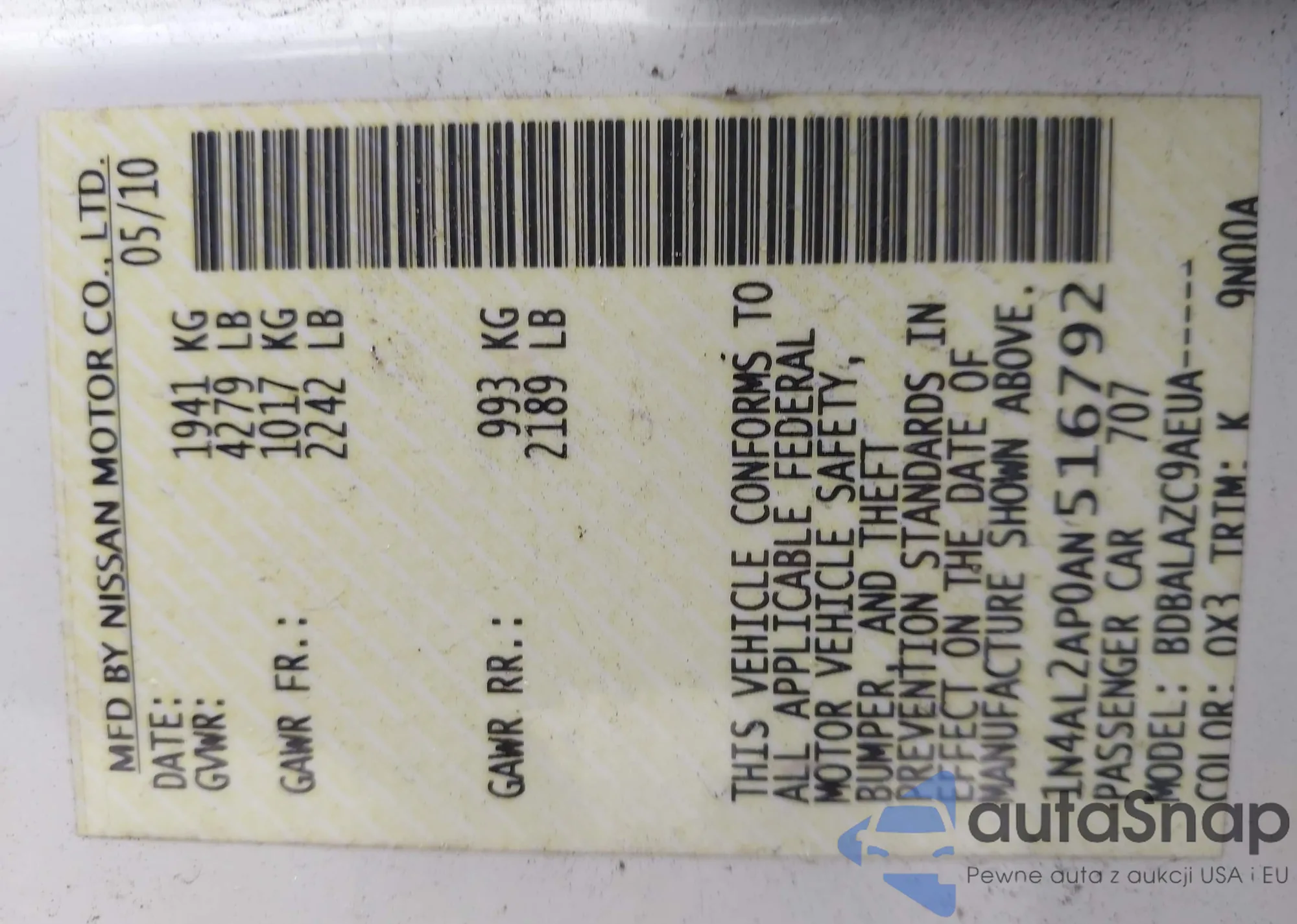 LOT: 43068902 VIN: 4T1CA38P44U009095