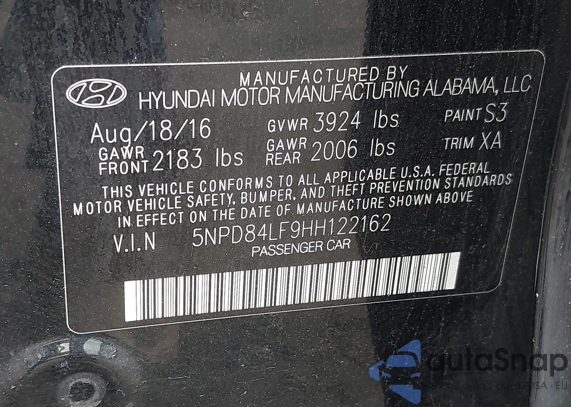 • VIN 5NPD84LF9HH122162