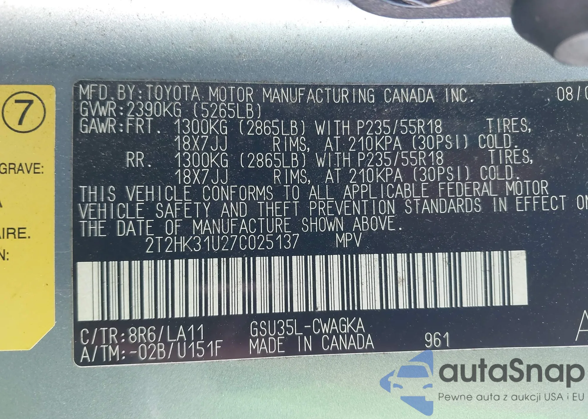 • VIN 4T1BK1FK9HU581774