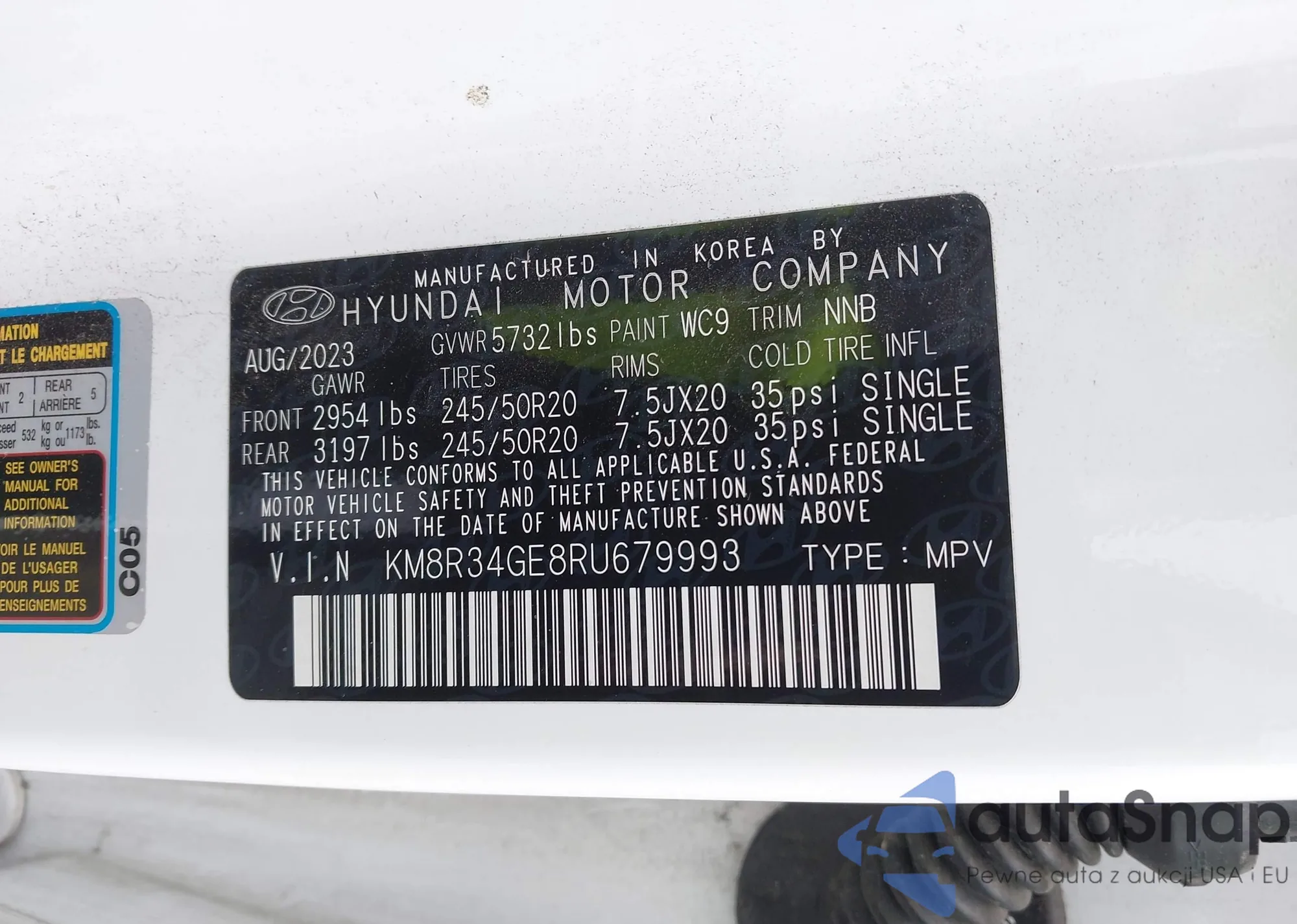 LOT: 43175428 VIN: KM8R34GE8RU679993