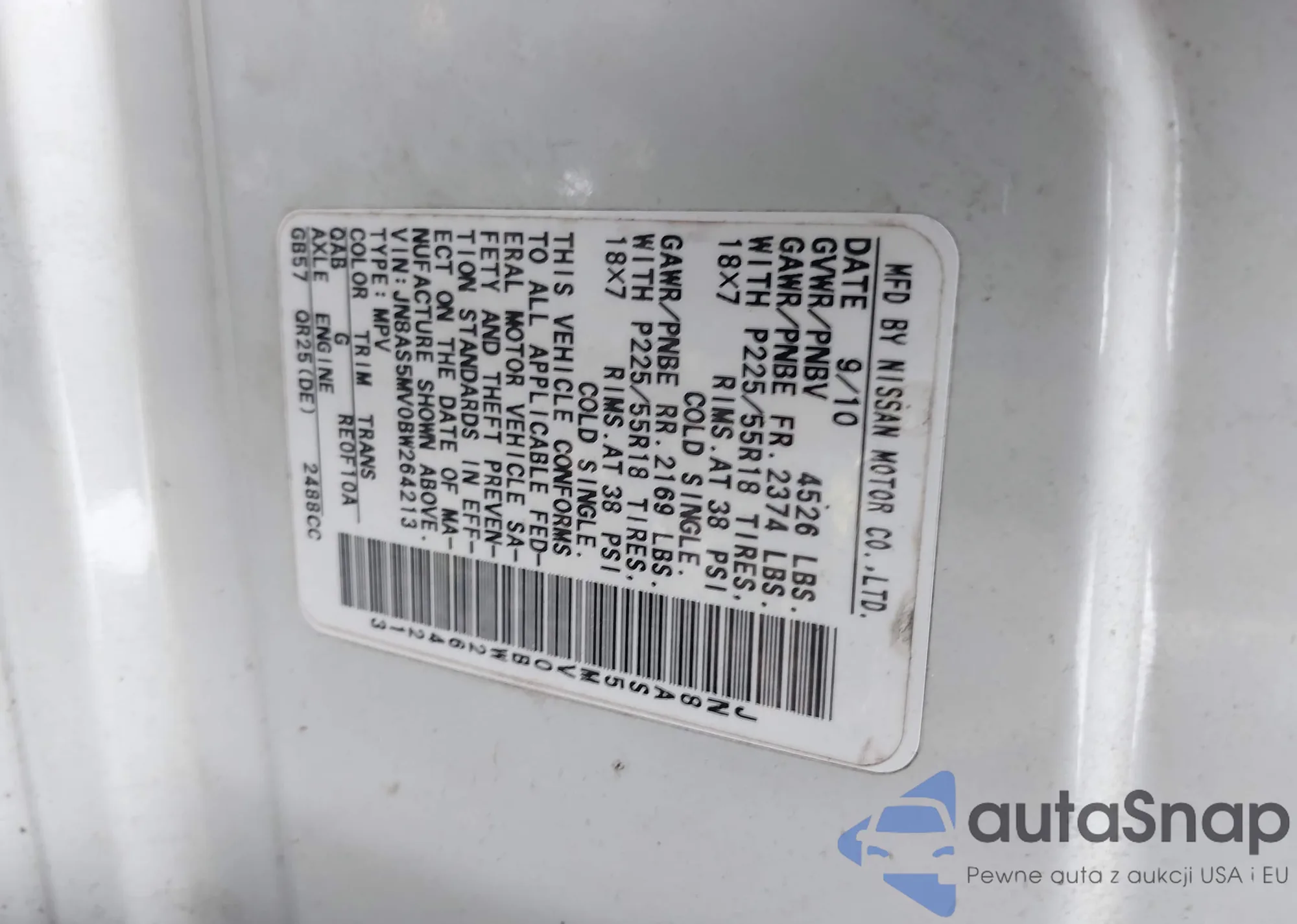 LOT: 42771081 VIN: 5N1BT3BB7PC928781