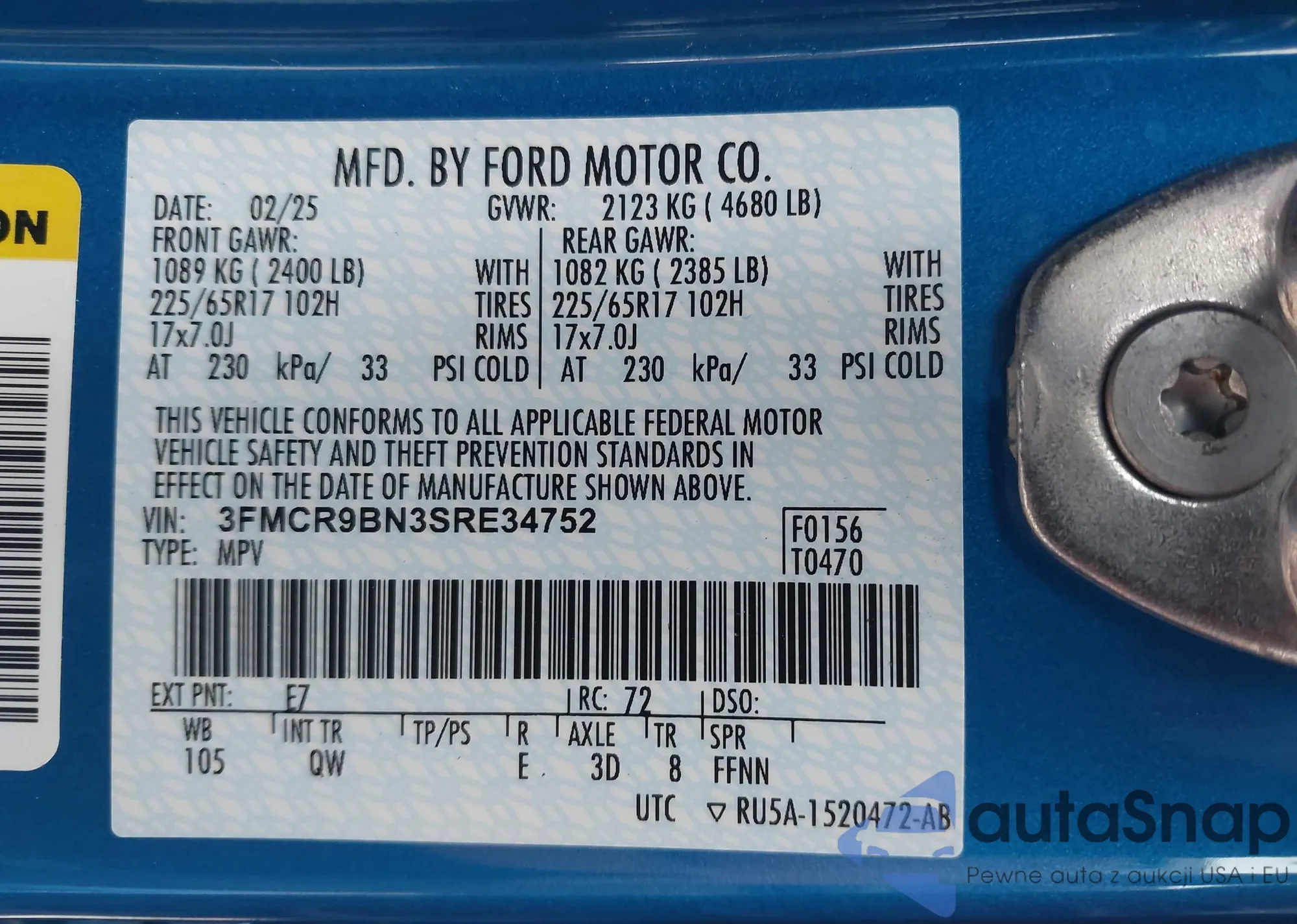 • VIN 3FMCR9BN3SRE34752