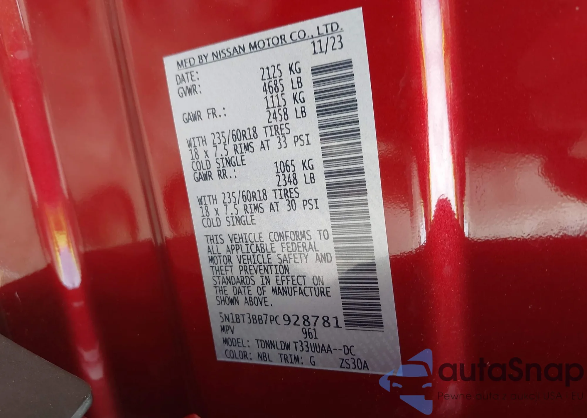 • VIN 5N1BT3BB7PC928781