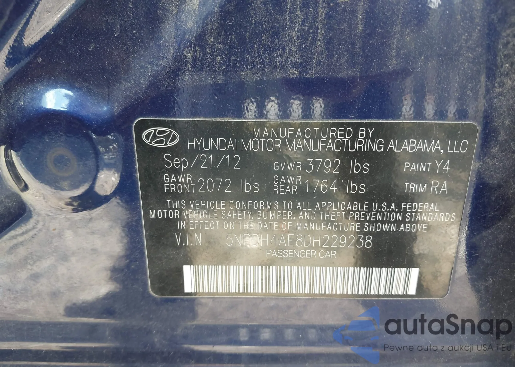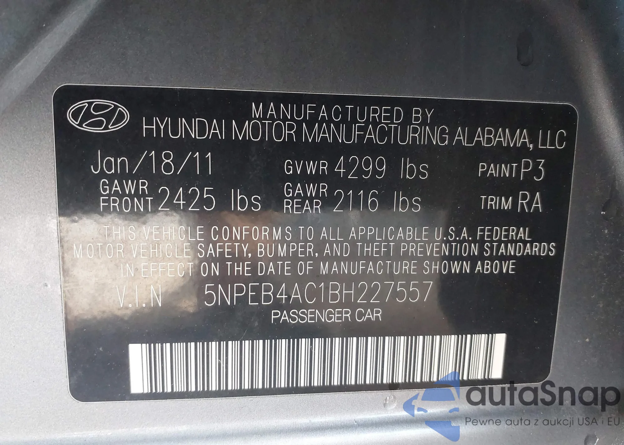 • VIN 5NPEB4AC1BH227557