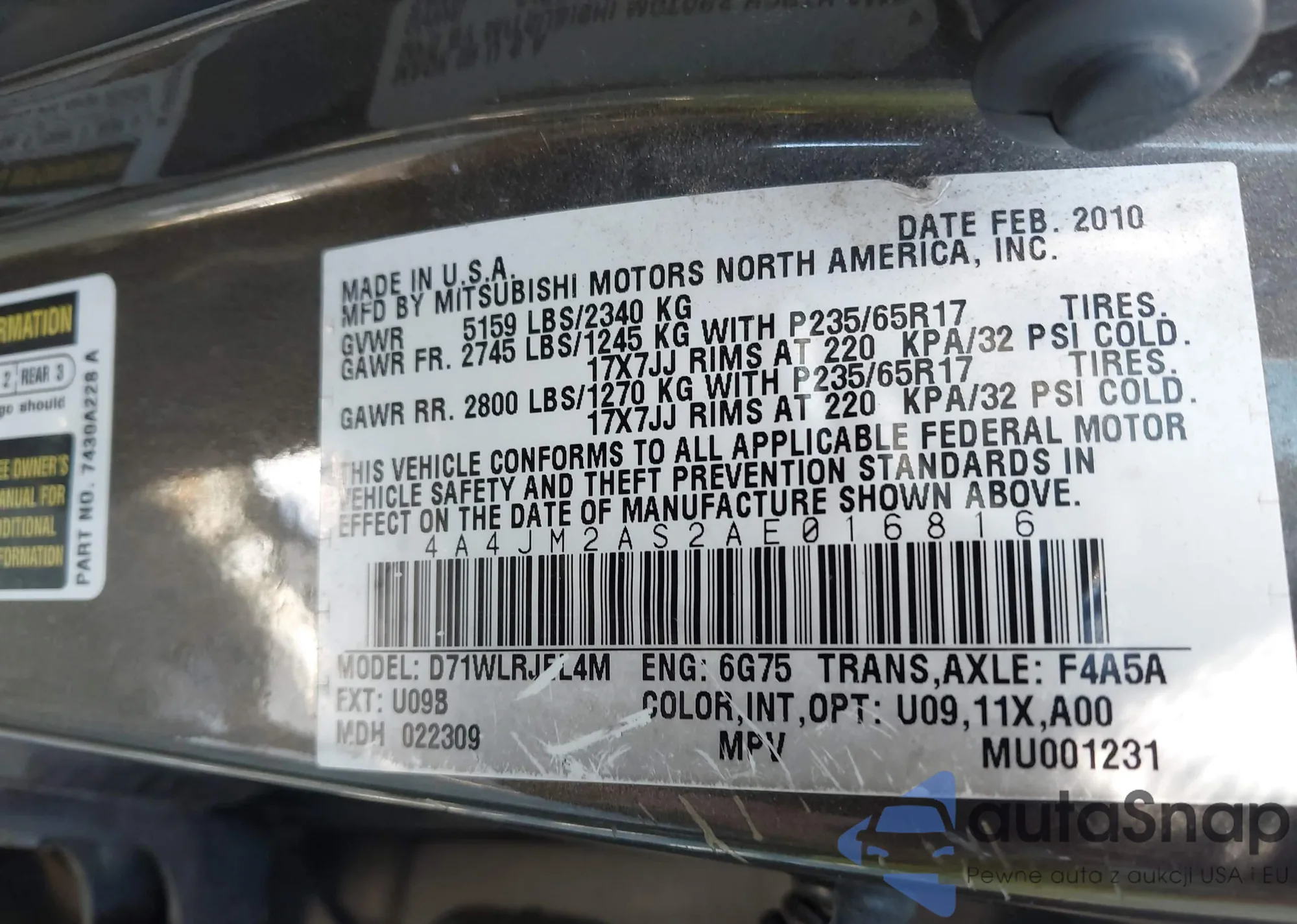 • VIN 4A4JM2AS2AE016816