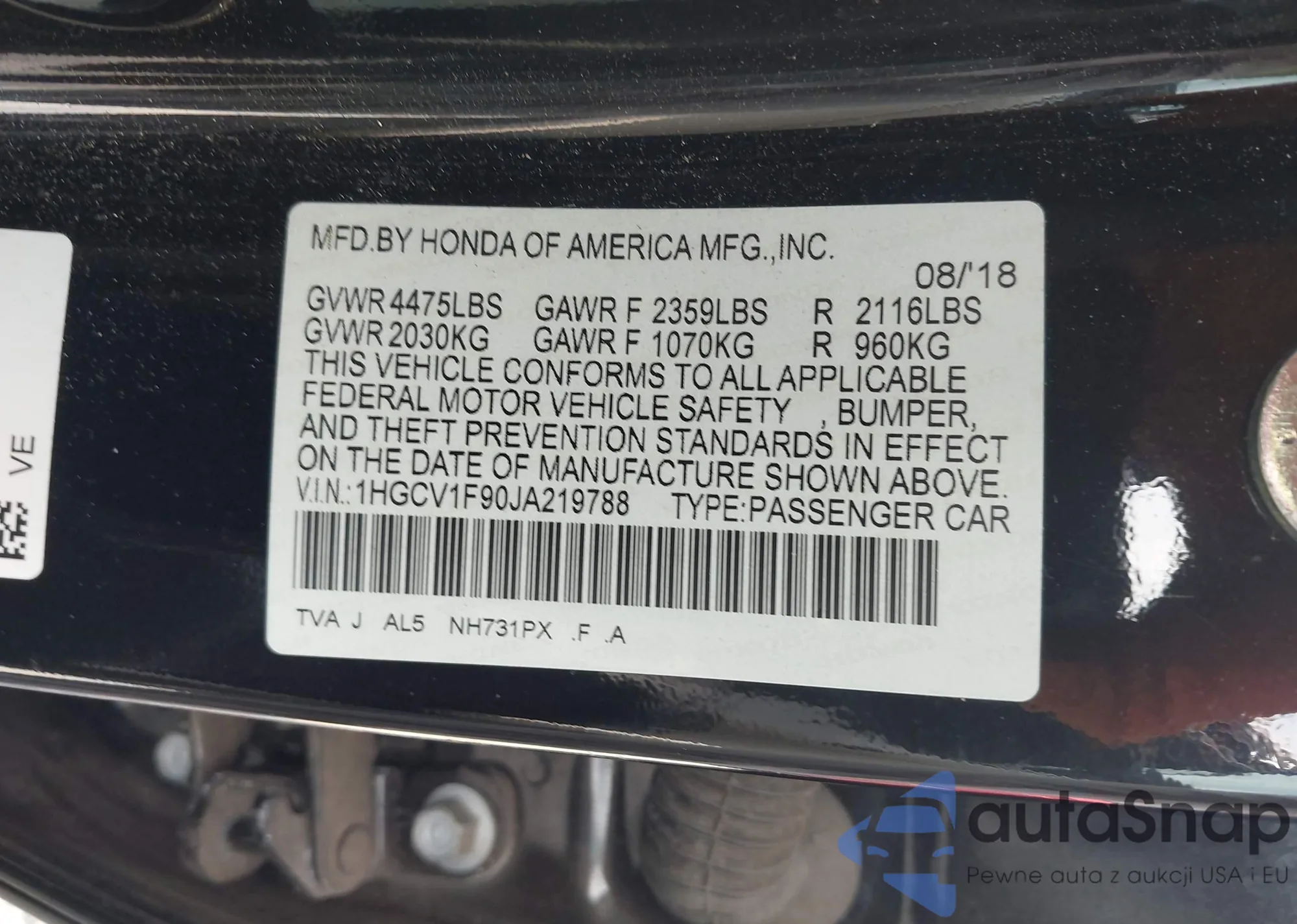 LOT: 43062755 VIN: 19XFB2F81CE367613