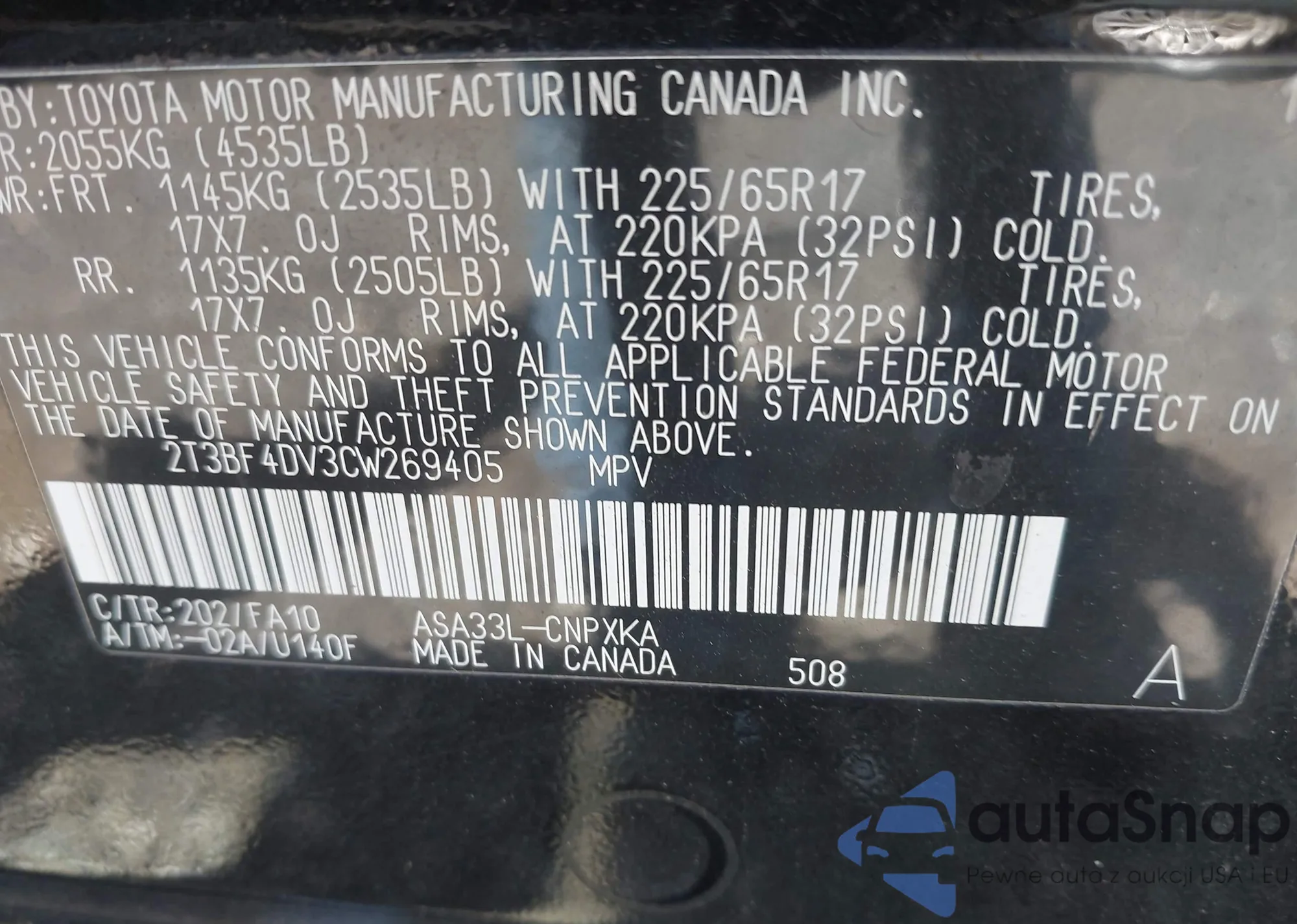 LOT: 43071131 VIN: 4T1DAACK1SU611194