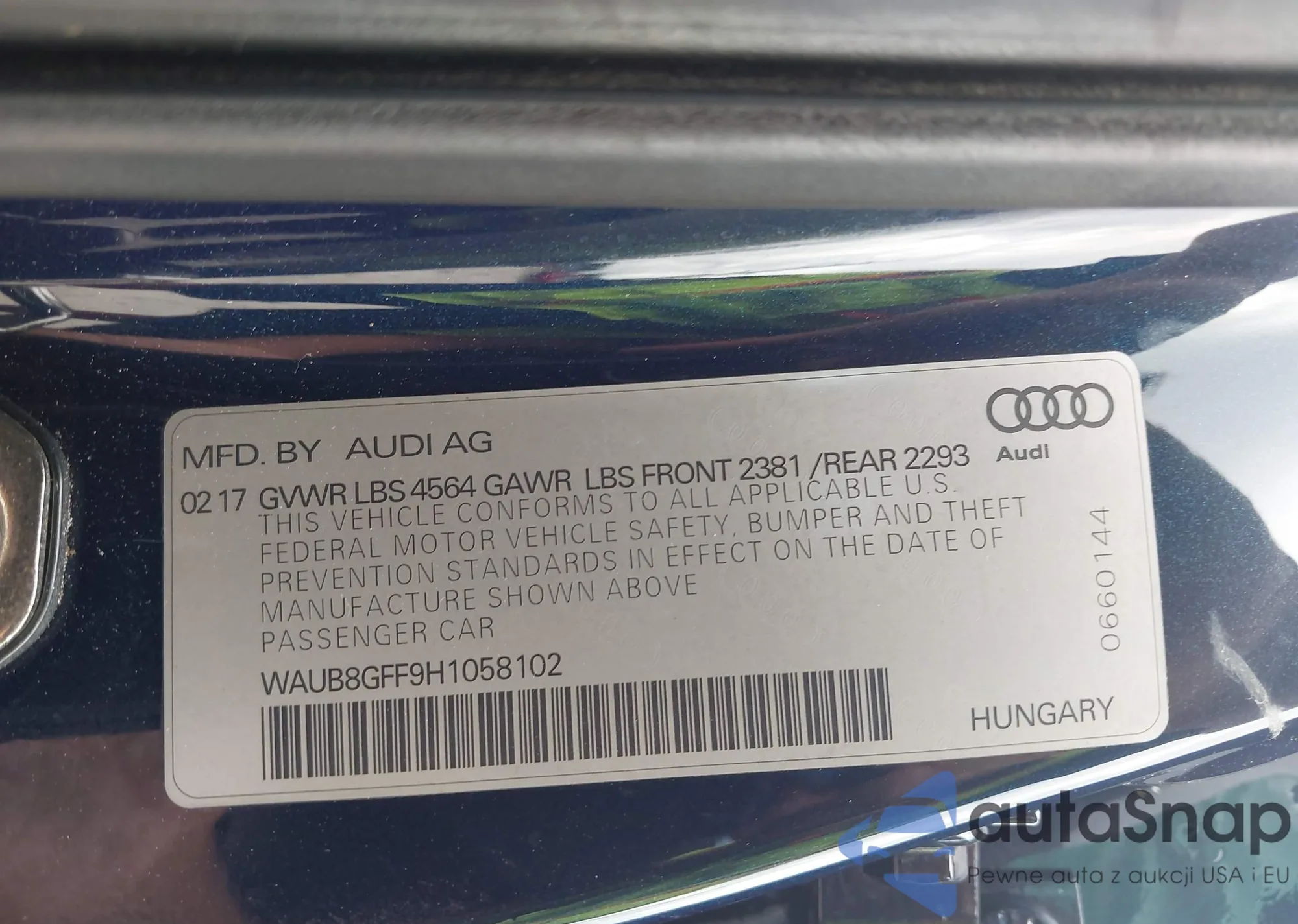 LOT: 42920682 VIN: WAUB8GFF9H1058102