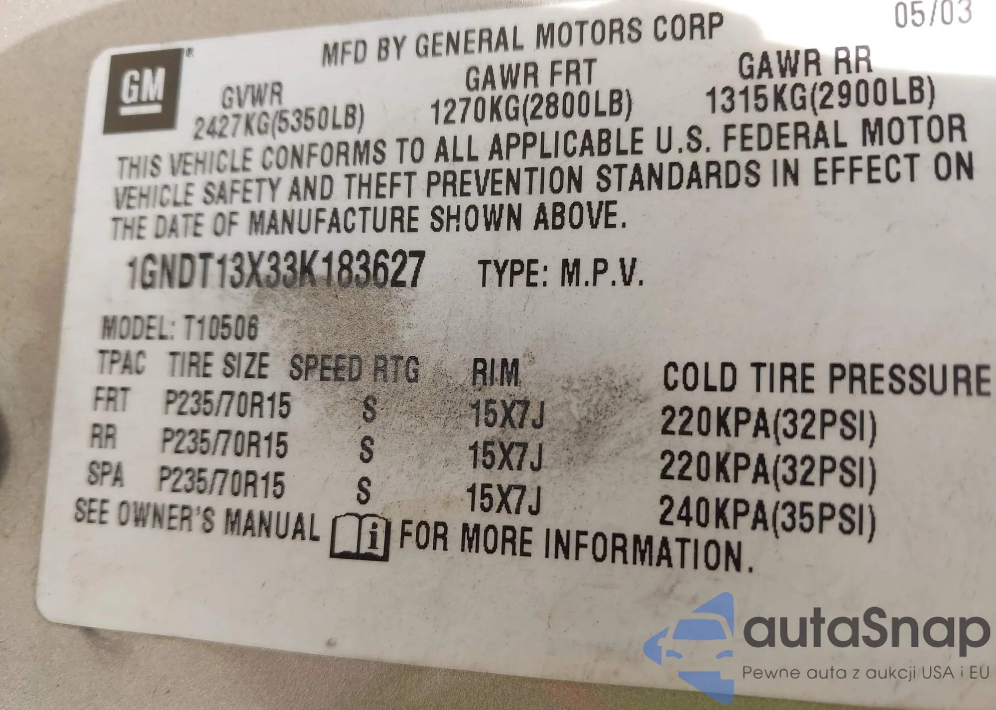 LOT: 42657349 VIN: 5TDBSKFC7SS160831