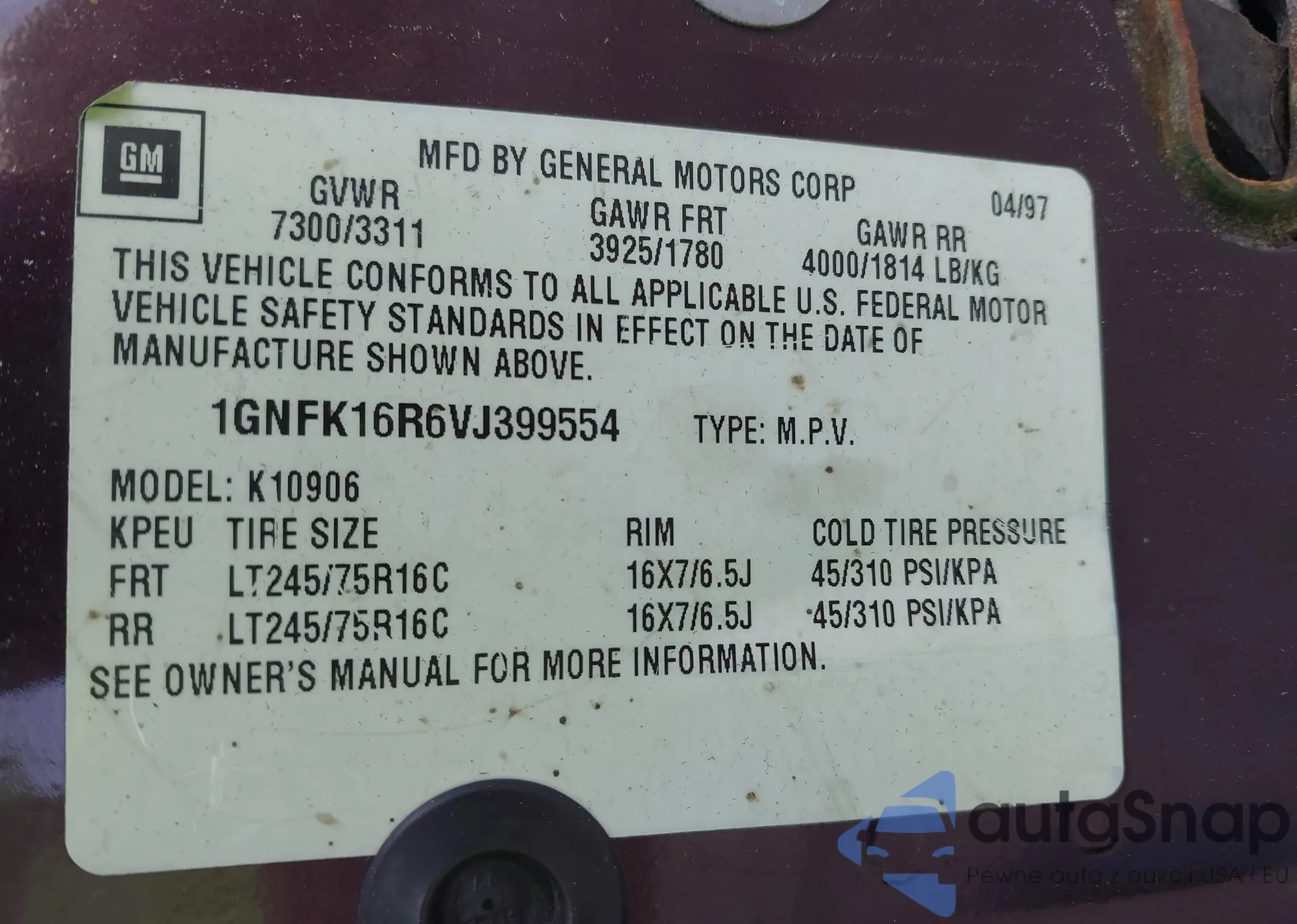 • VIN 1G6DP577160210454
