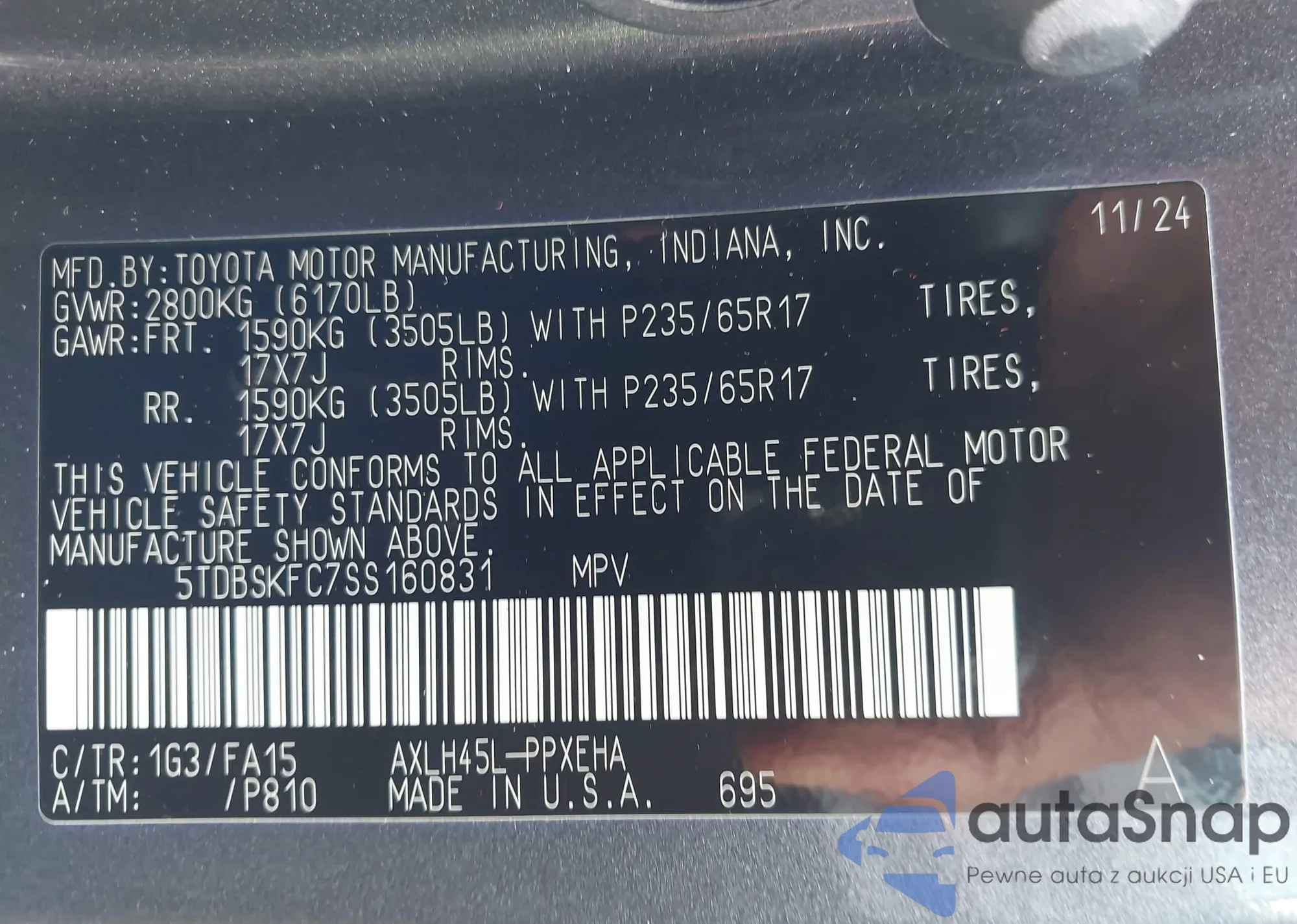 • VIN 5TDBSKFC7SS160831