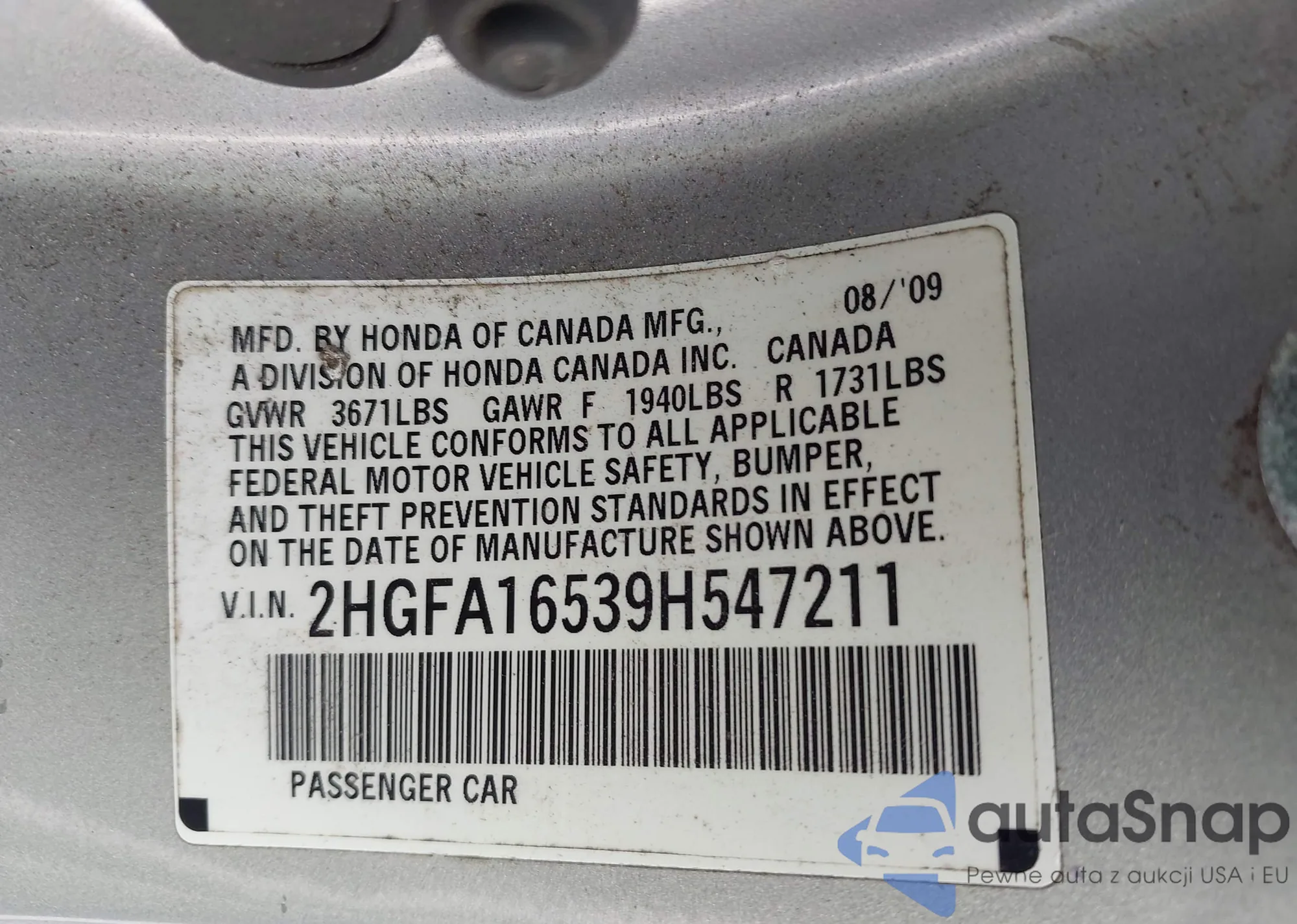 • VIN 5FNYG1H63SB029218