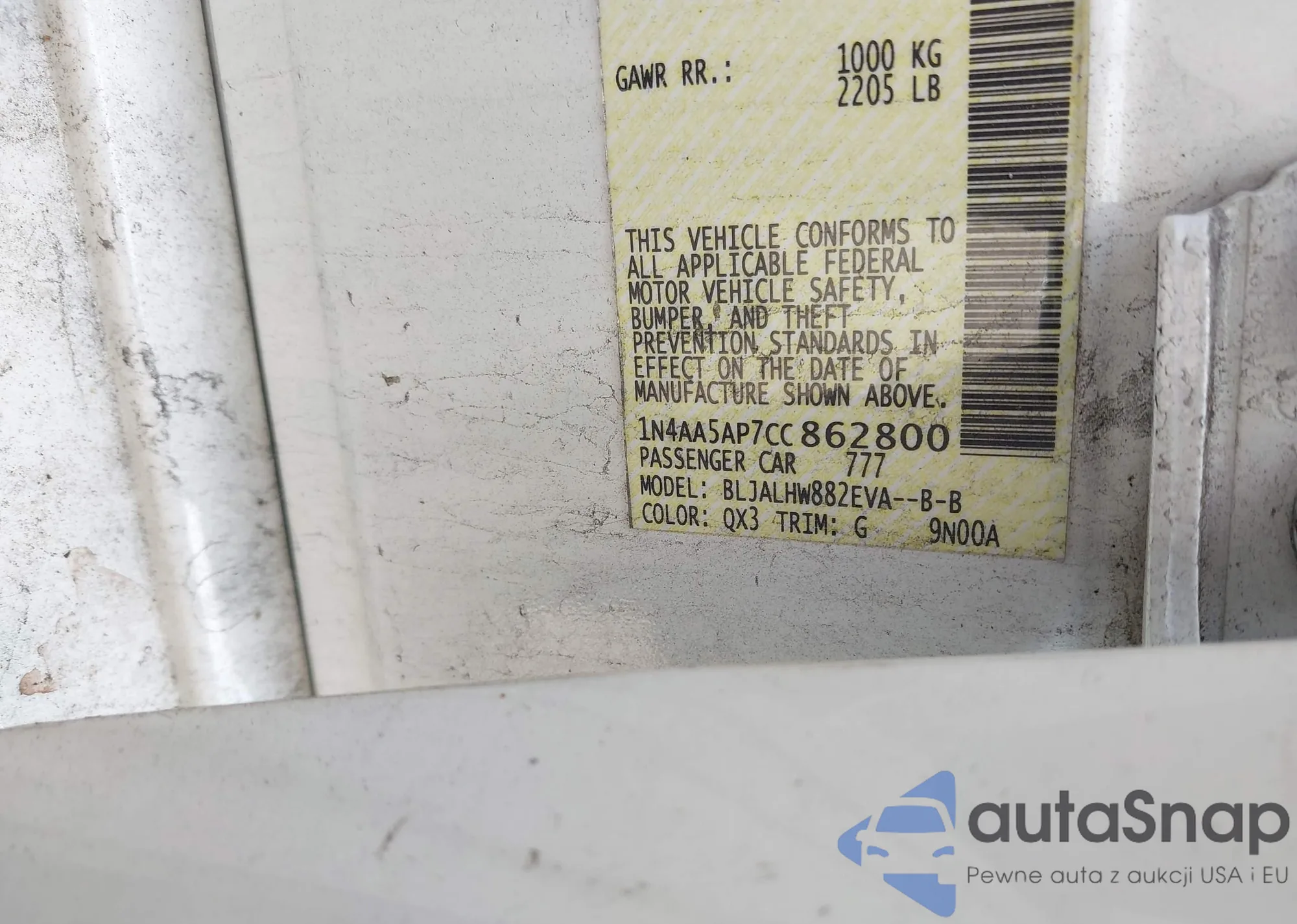 • VIN 1N4AA5AP7CC862800