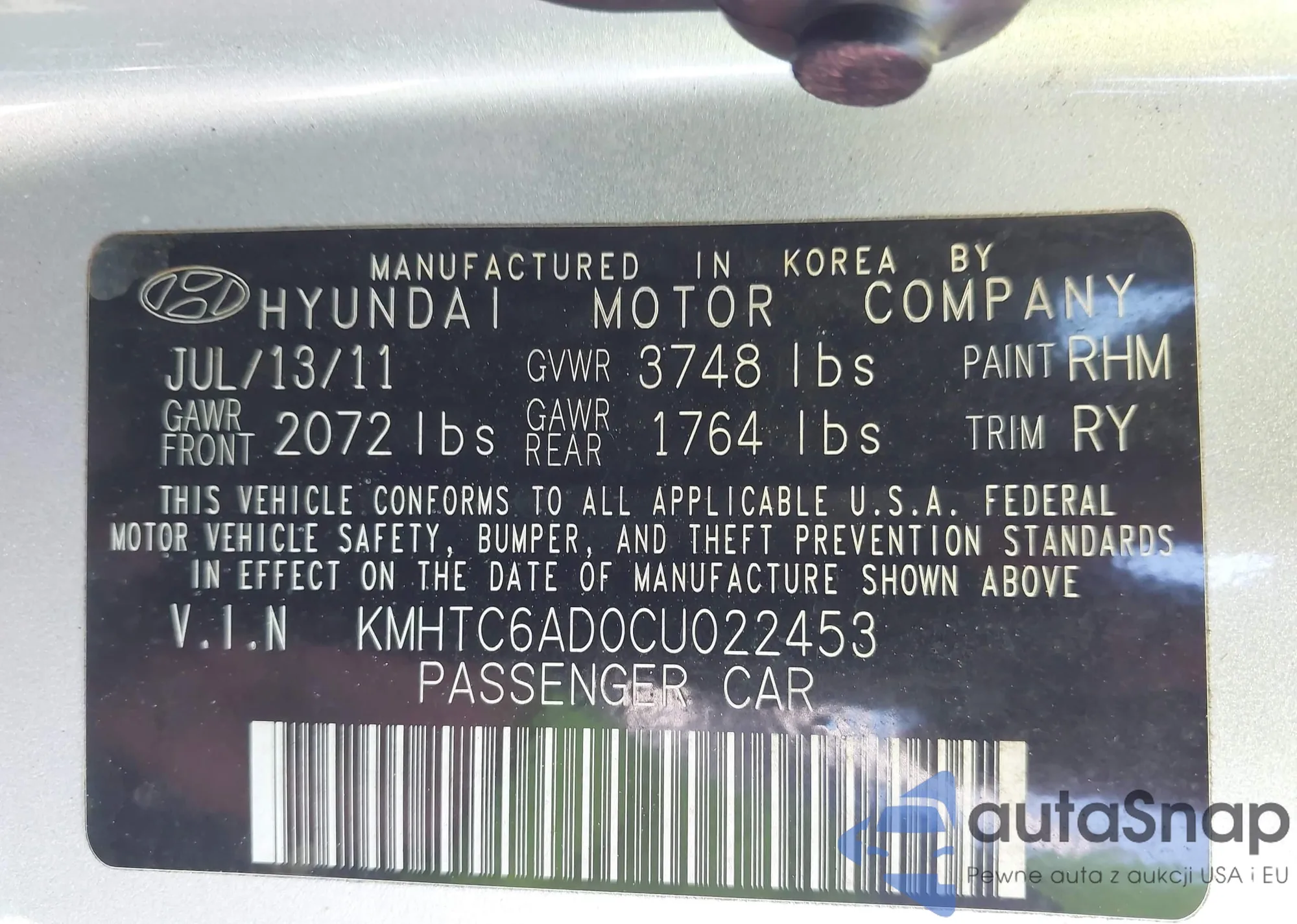 • VIN 1C4AJWAG9DL572382