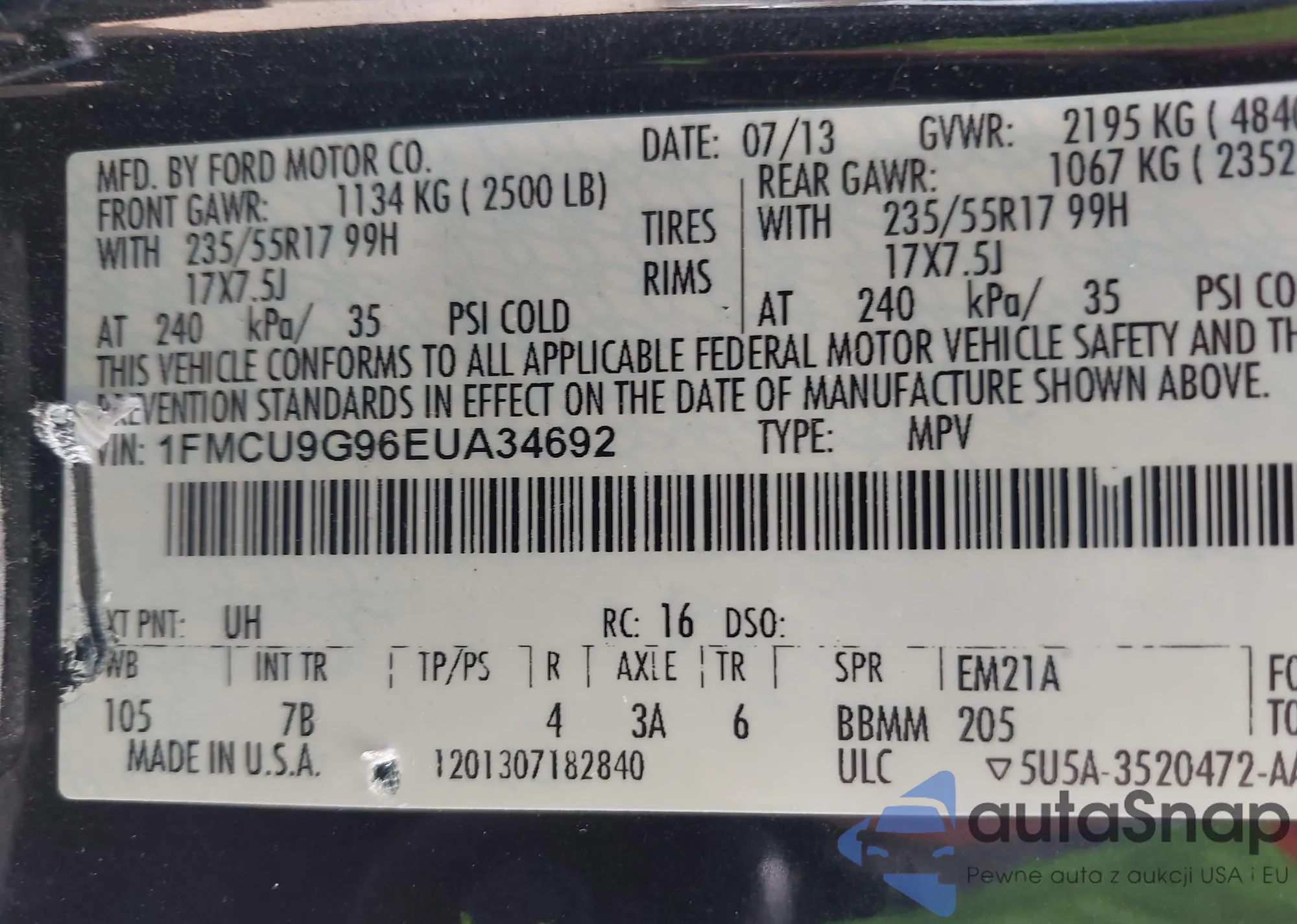 • VIN 1FMCU9GX2DUD86889
