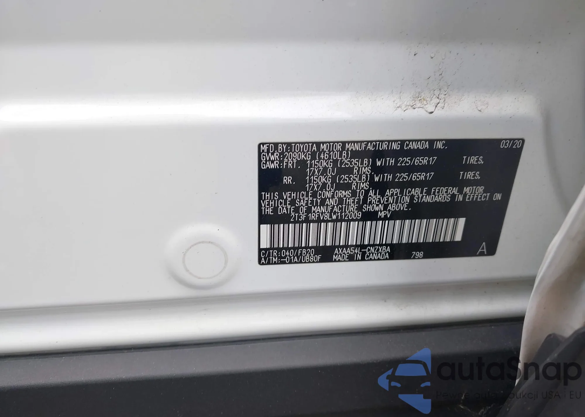 • VIN 2T3F1RFV8LW112009