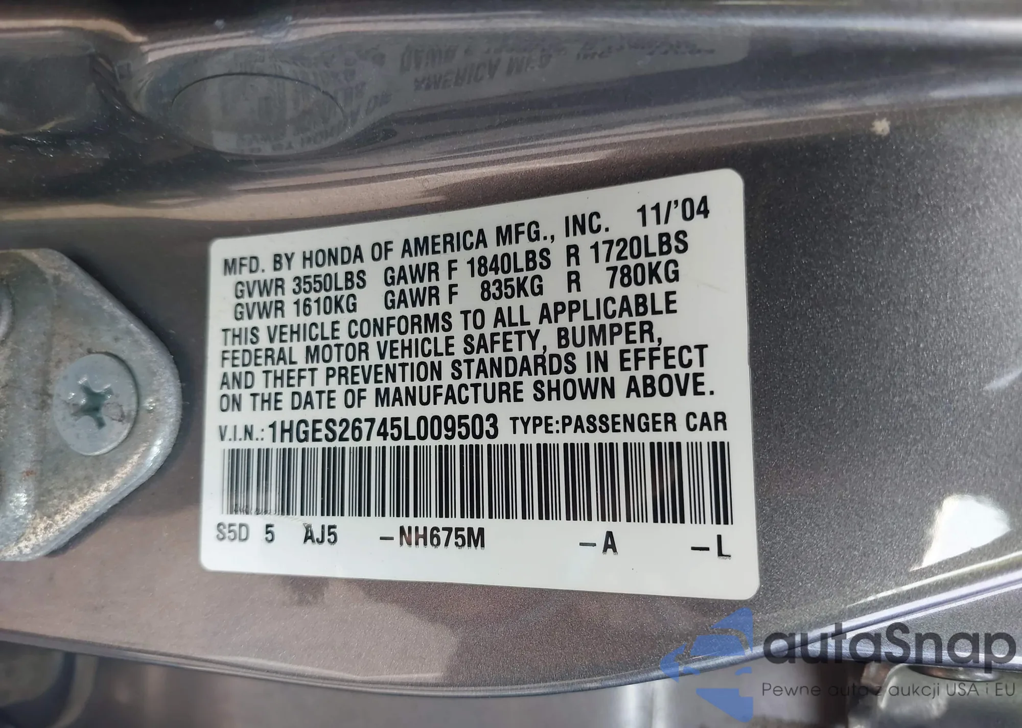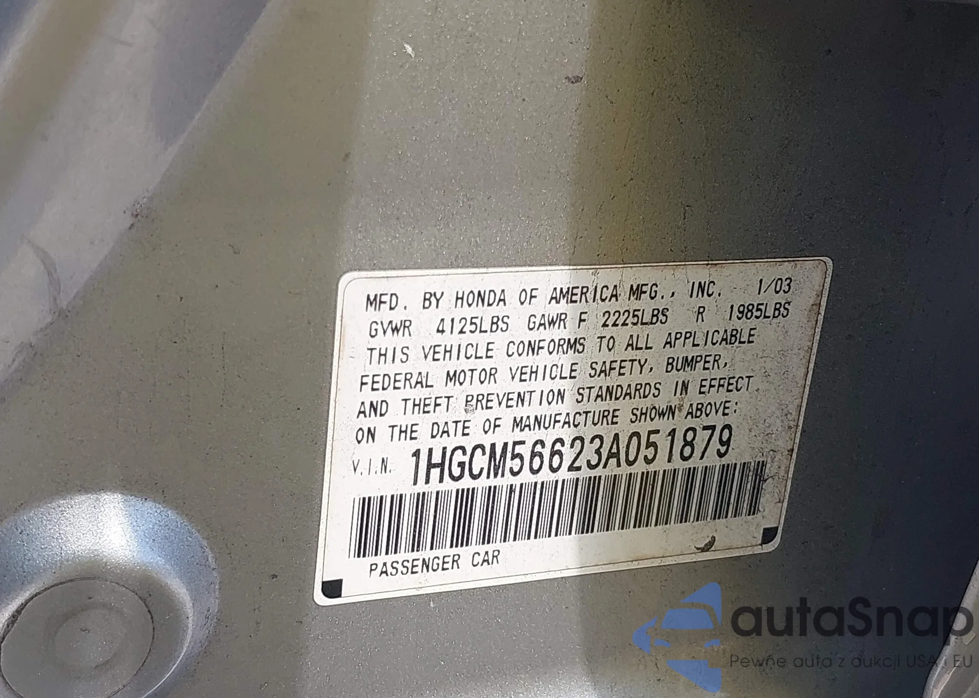 LOT: 42829134 VIN: 1HGCM56623A051879