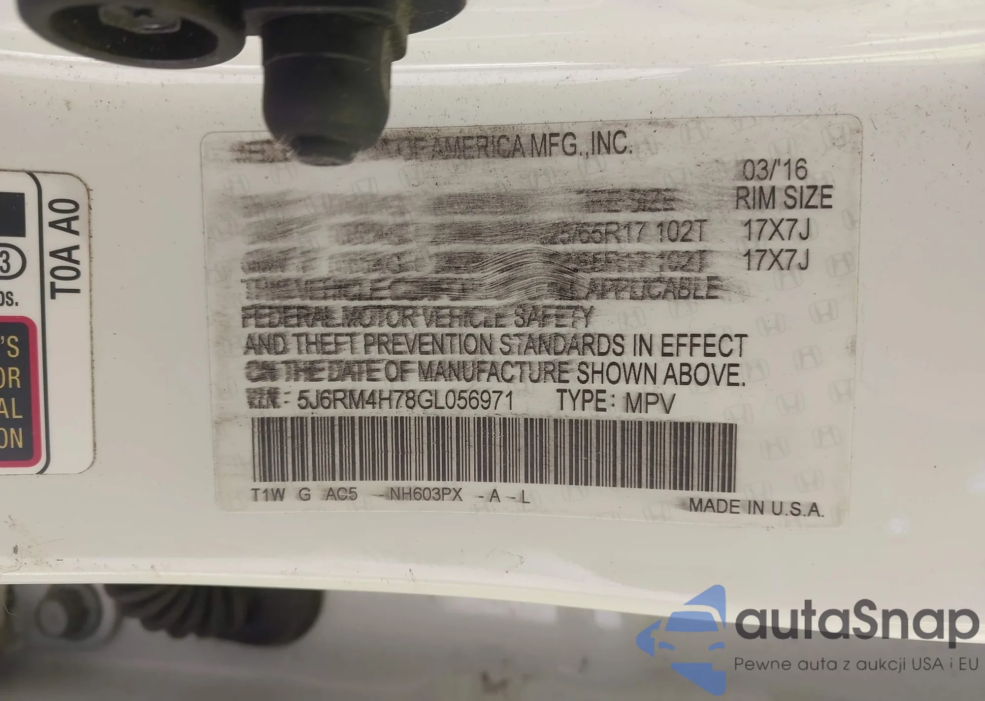 • VIN 5J6RM4H78GL056971