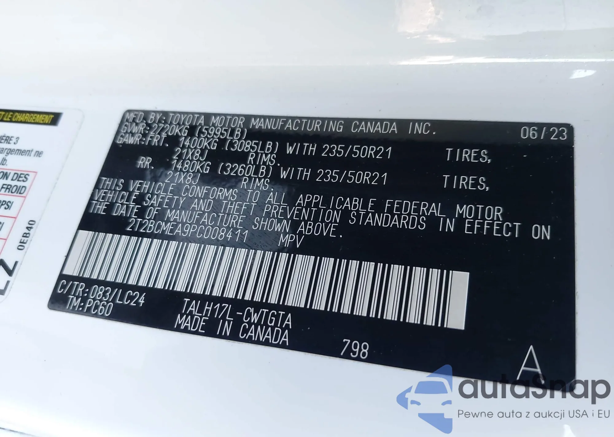 • VIN 2T2BCMEA9PC008411