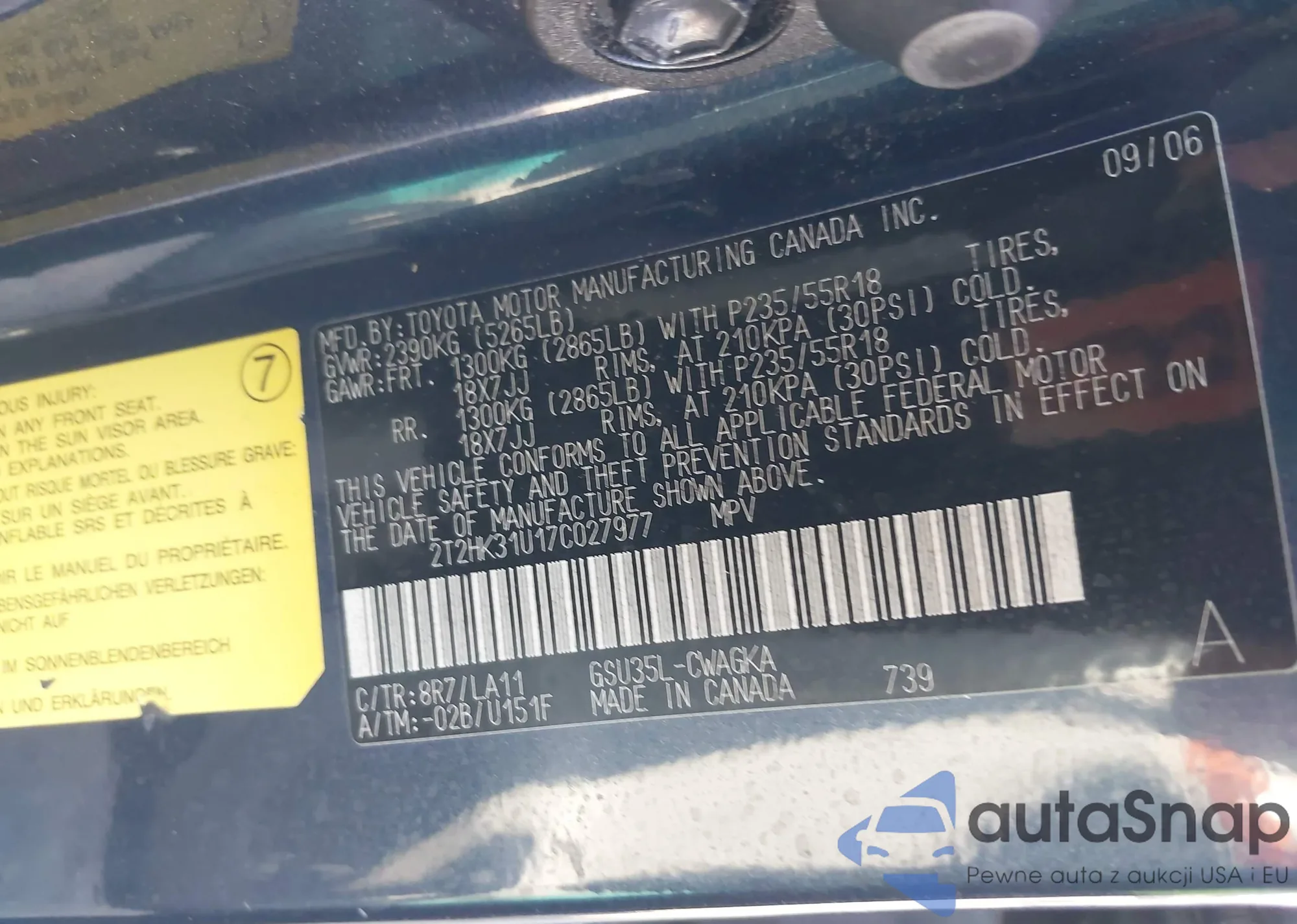 LOT: 43105874 VIN: 2T2HA31U35C043212