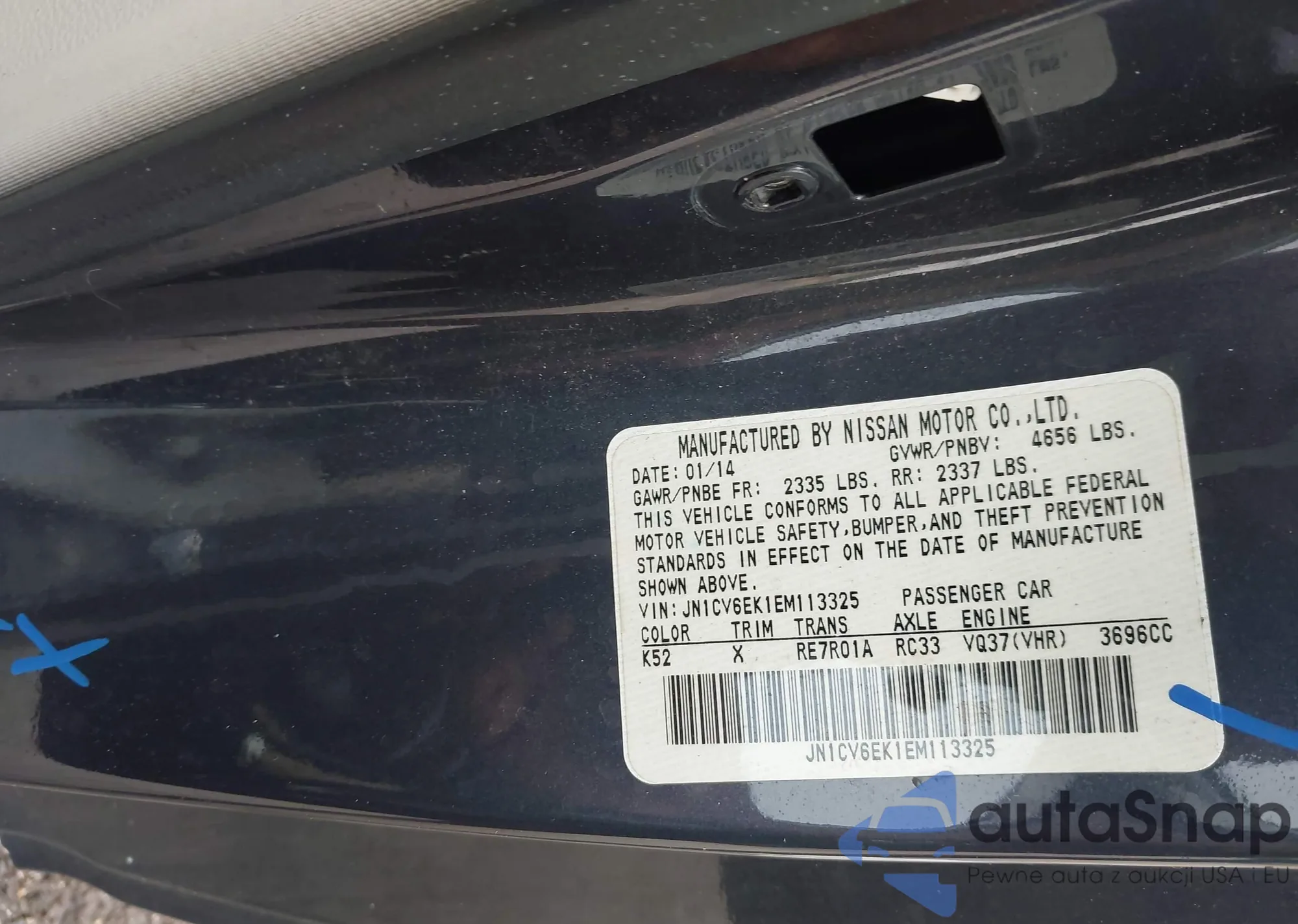 LOT: 42861673 VIN: JN1CV6EK1EM113325