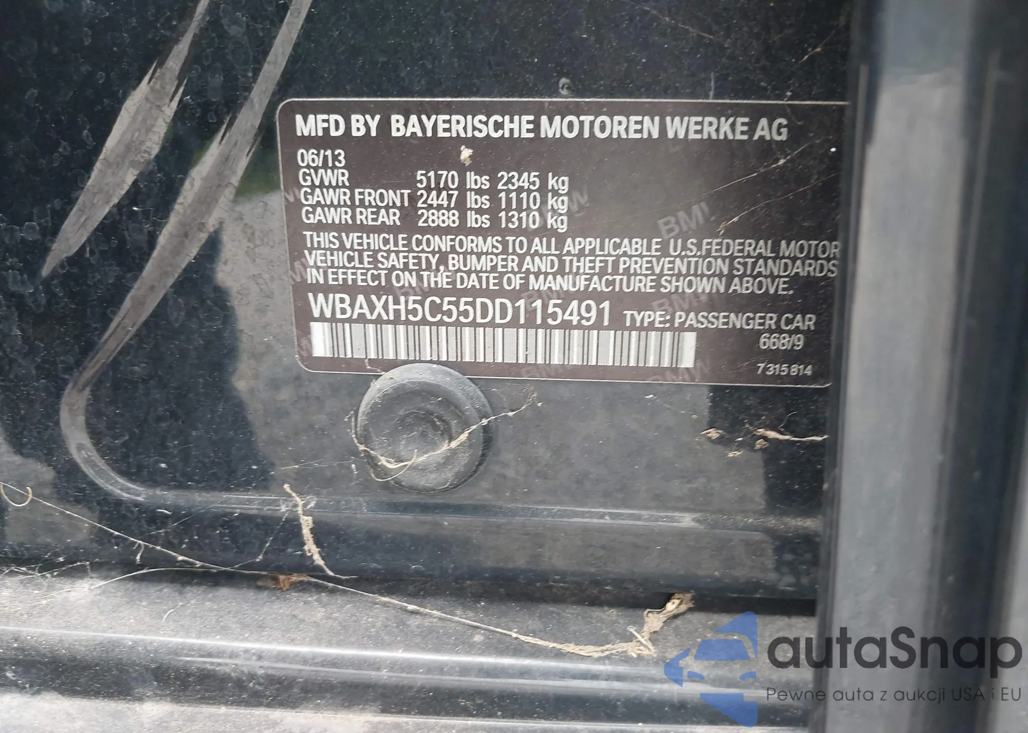 LOT: 42988287 VIN: WBAXH5C55DD115491