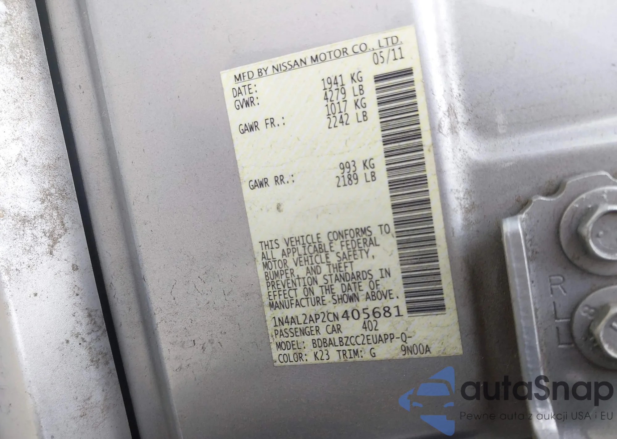 LOT: 42458808 VIN: 1N4AL2AP2CN405681