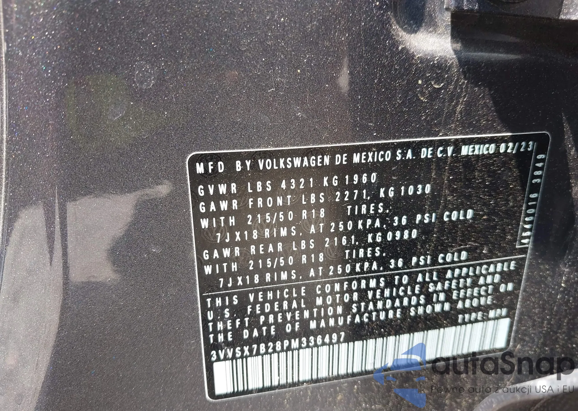 • VIN 3VVSX7B28PM336497