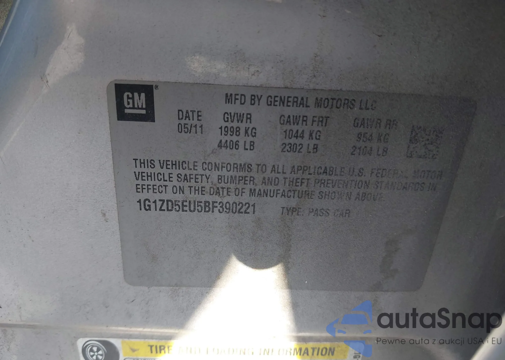 LOT: 42889413 VIN: 1G1ZD5EU5BF390221