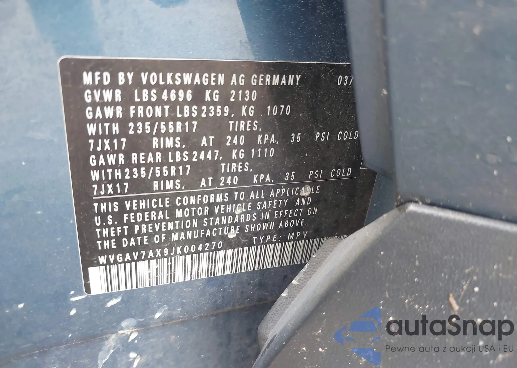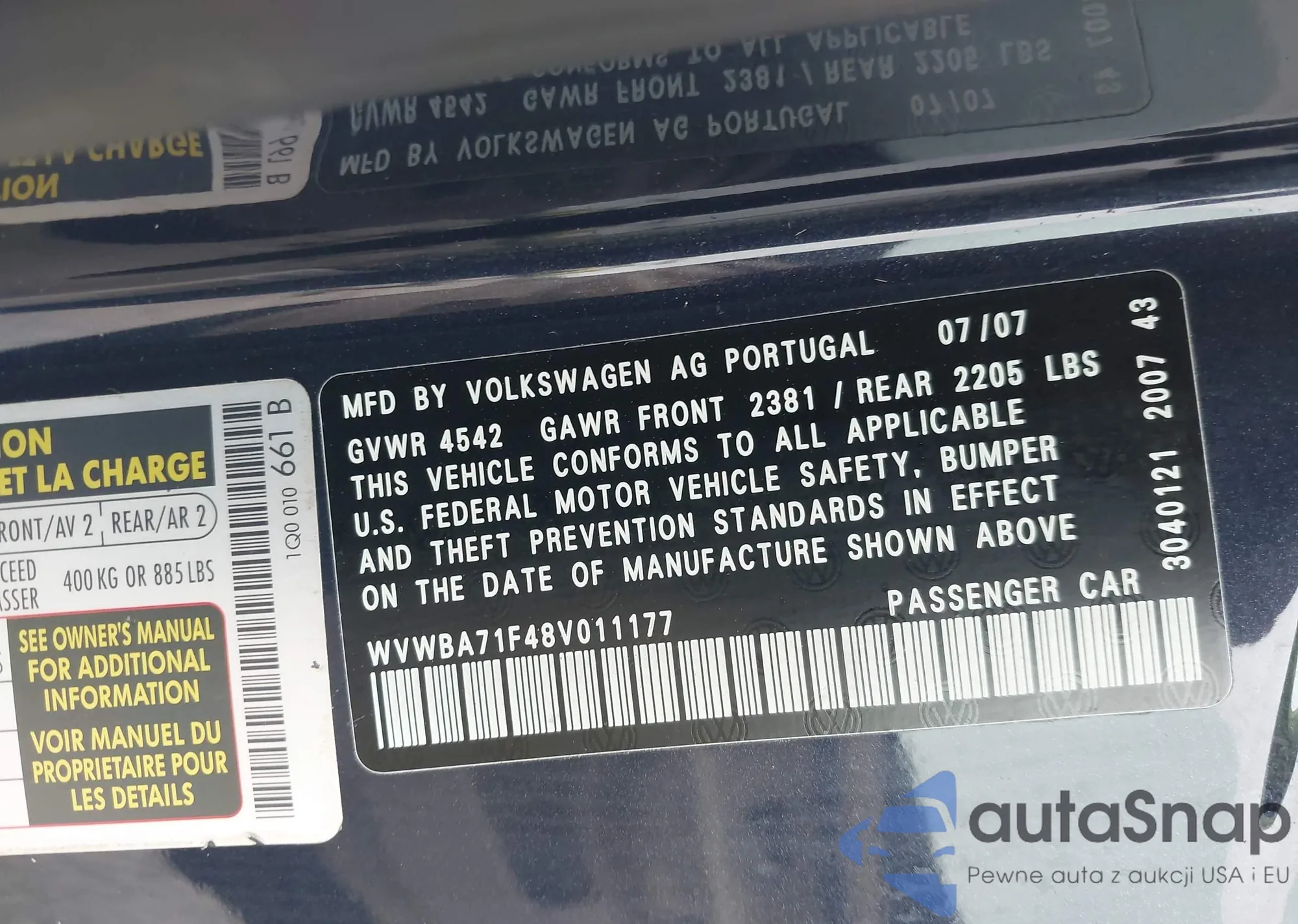 LOT: 43108488 VIN: WVWBA71F48V011177