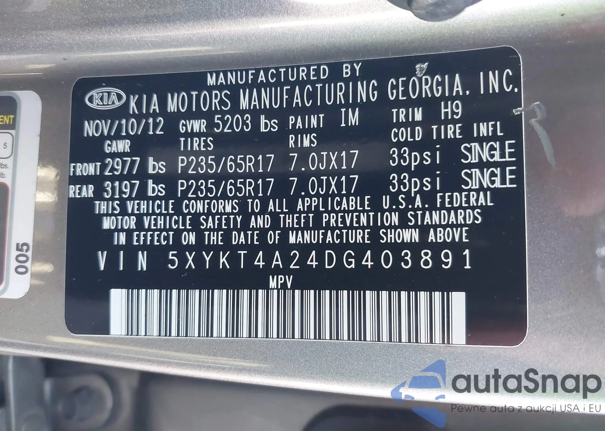 • VIN 5XYKT4A24DG403891