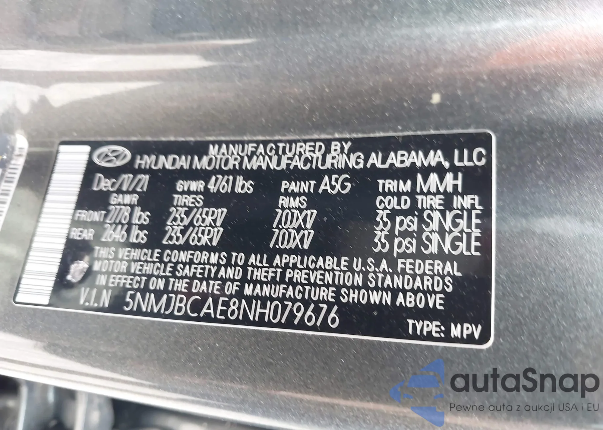 • VIN 5NPD84LF1HH093109