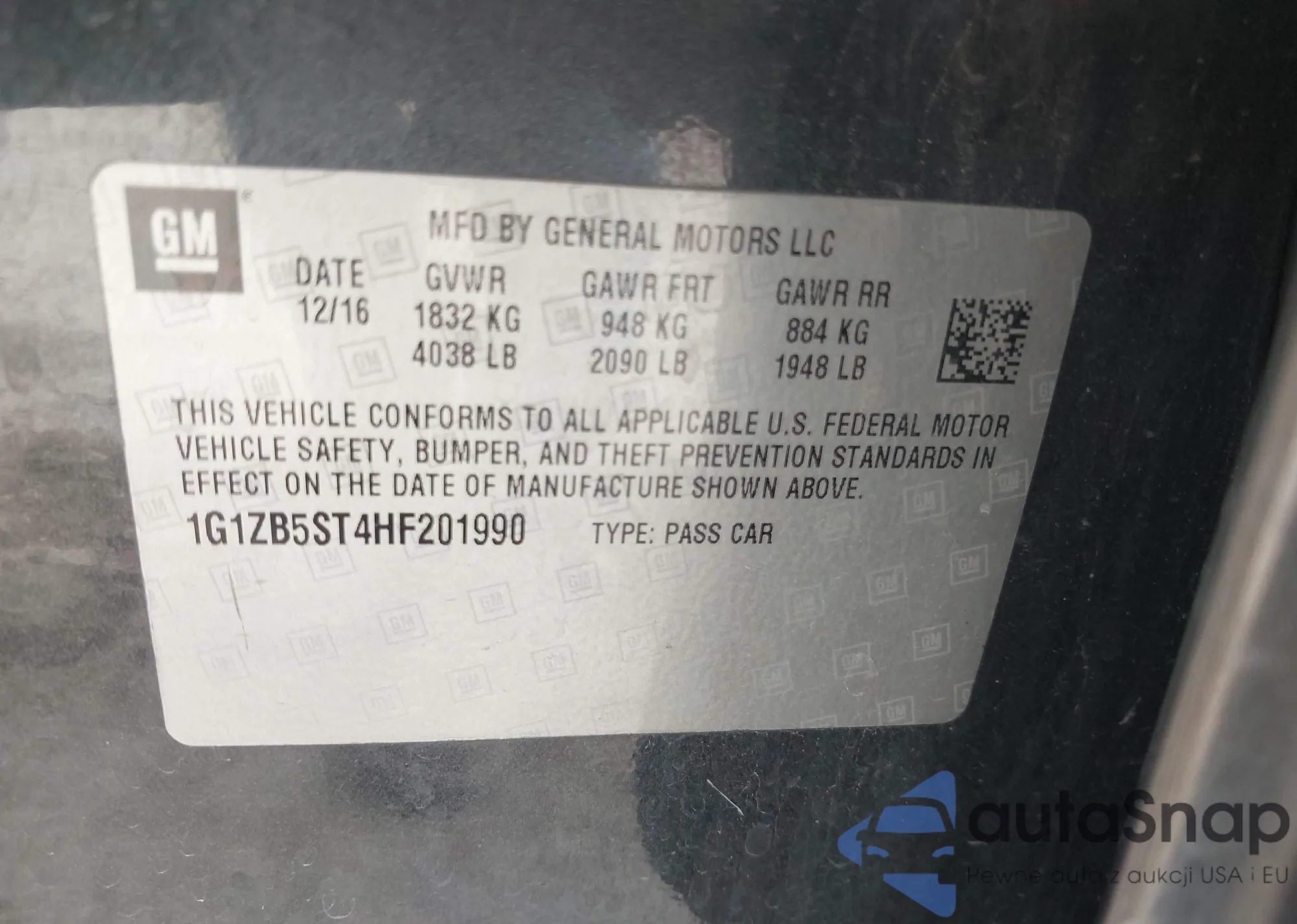 • VIN 1G1ZB5ST4HF201990