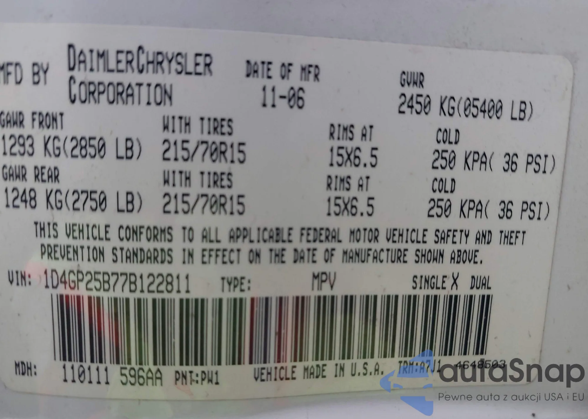 • VIN 1D4GP25B77B122811