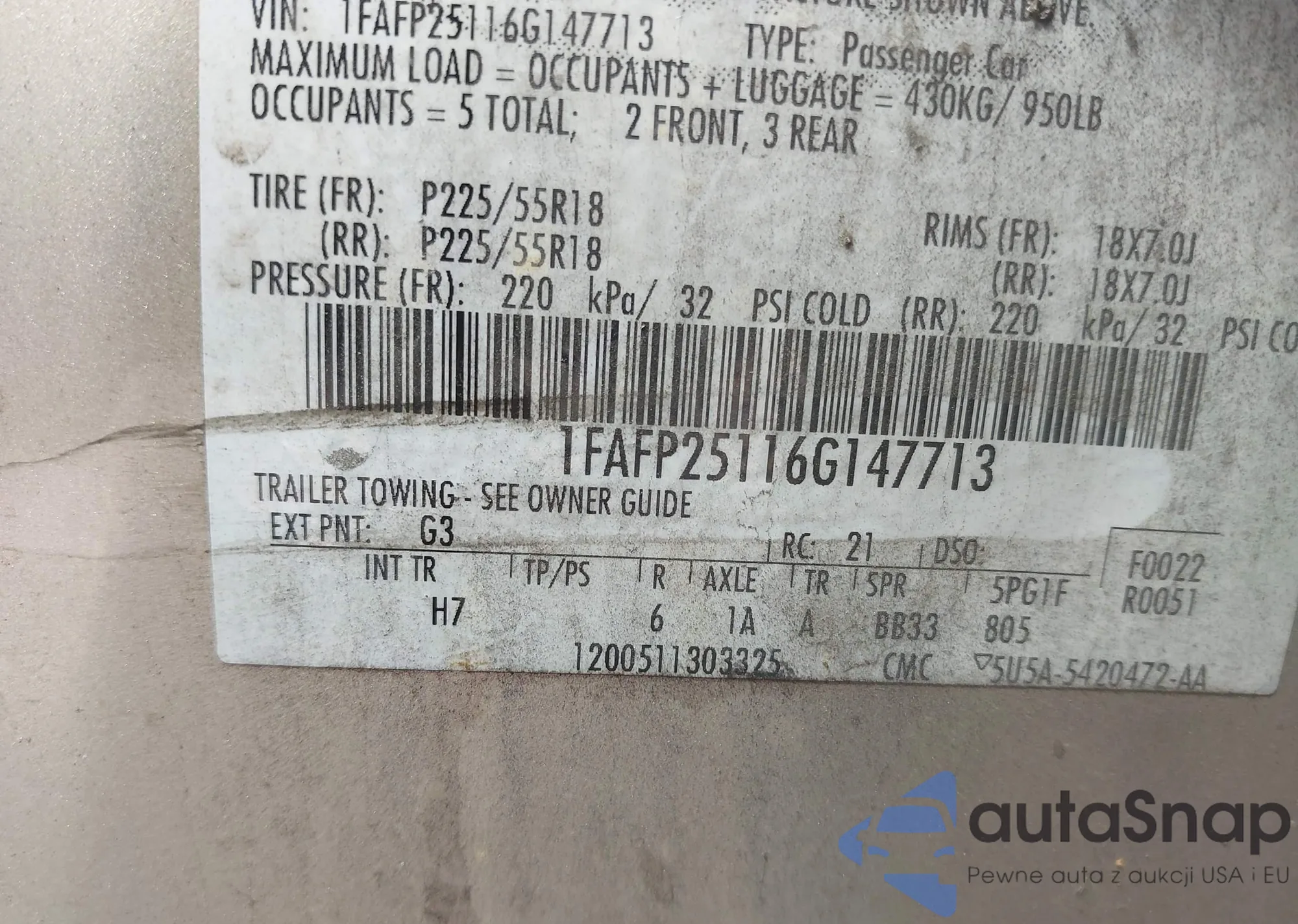 LOT: 43145828 VIN: 1FAFP25116G147713