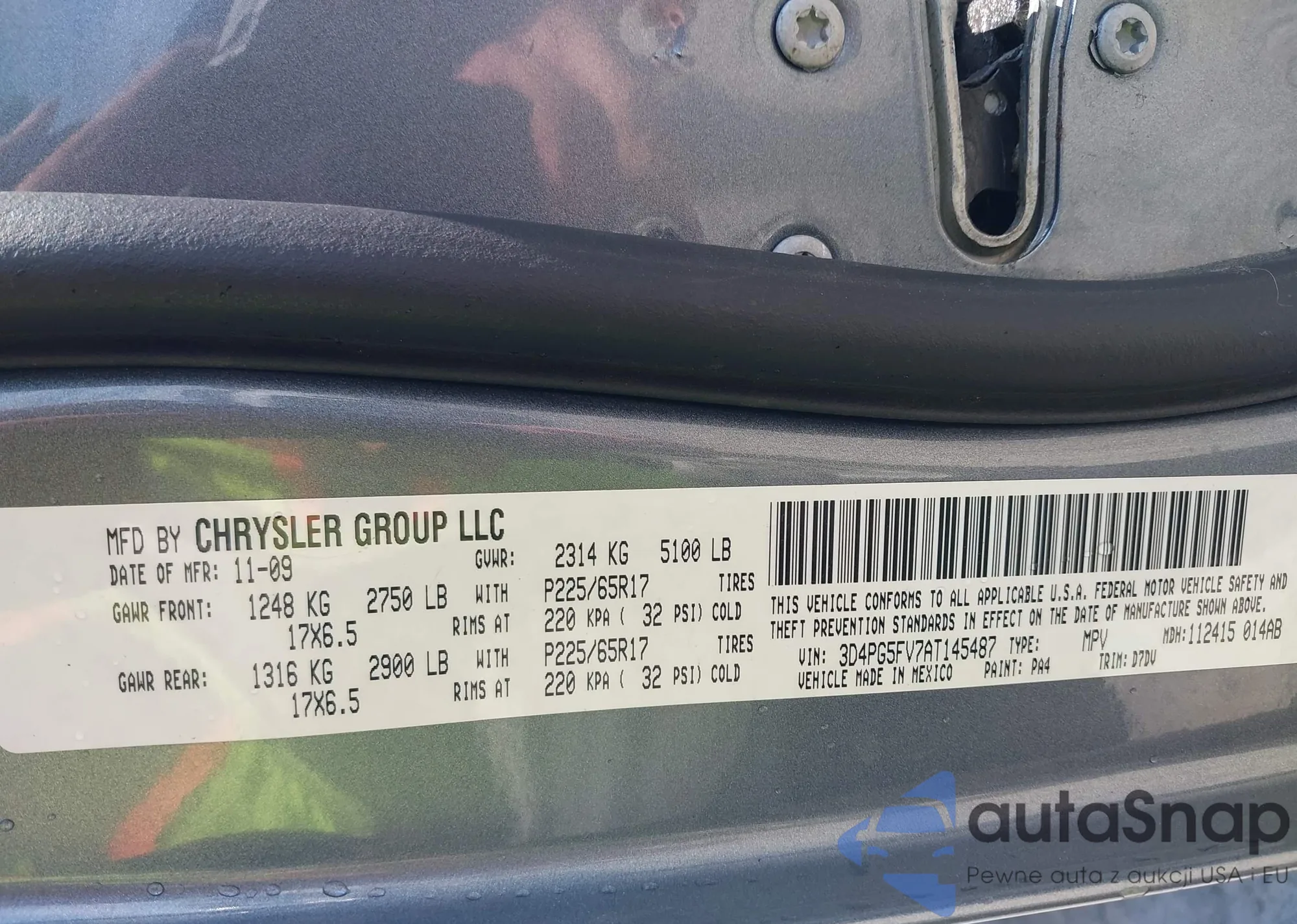 LOT: 43167164 VIN: 3D4PG5FV7AT145487