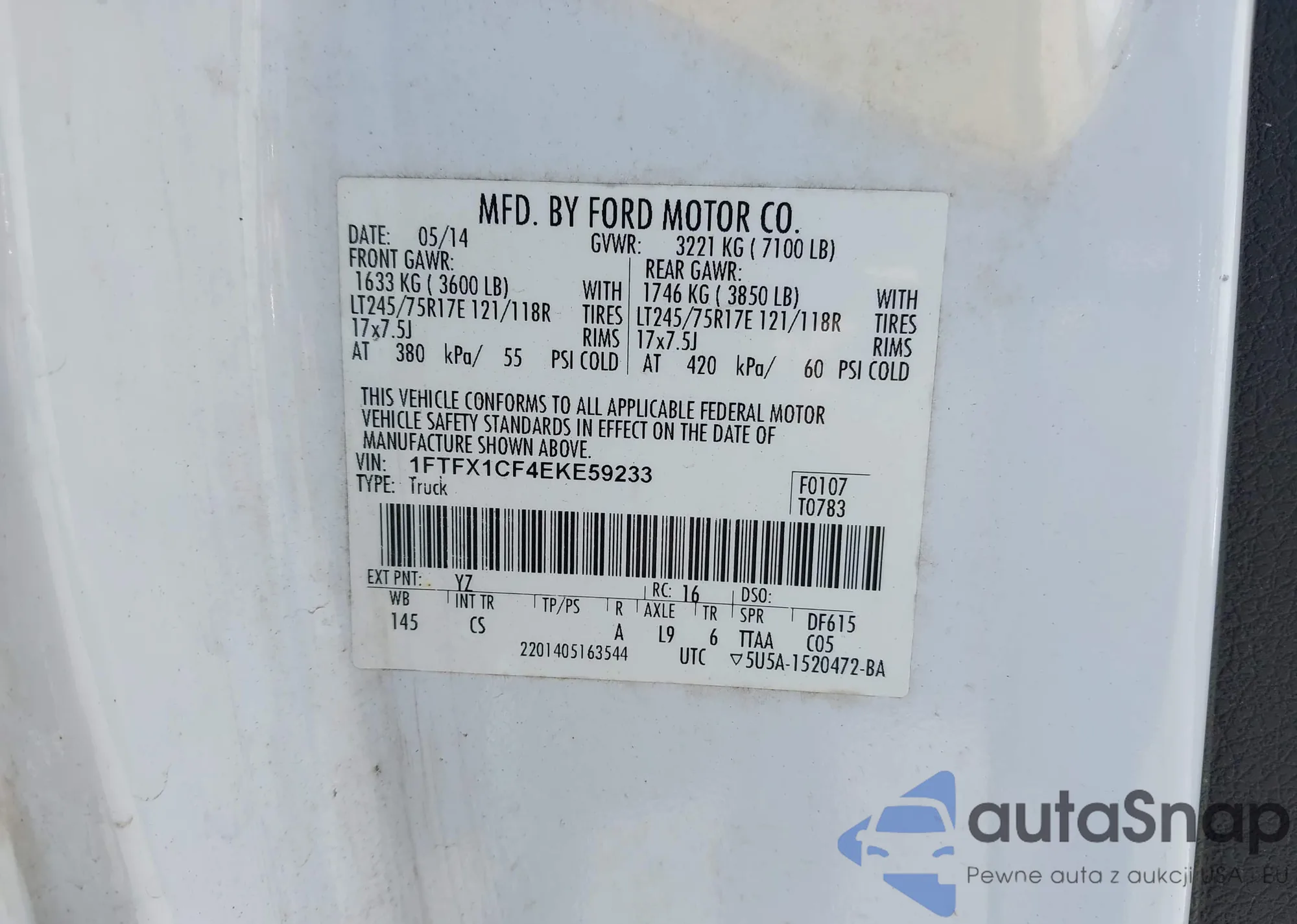 • VIN 1FTFX1CF4EKE59233