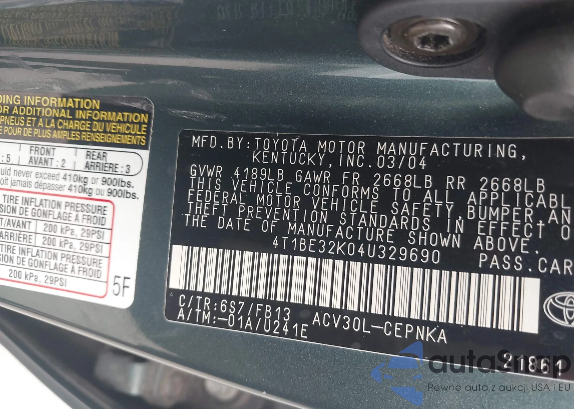 • VIN 4T1BE32K04U329690