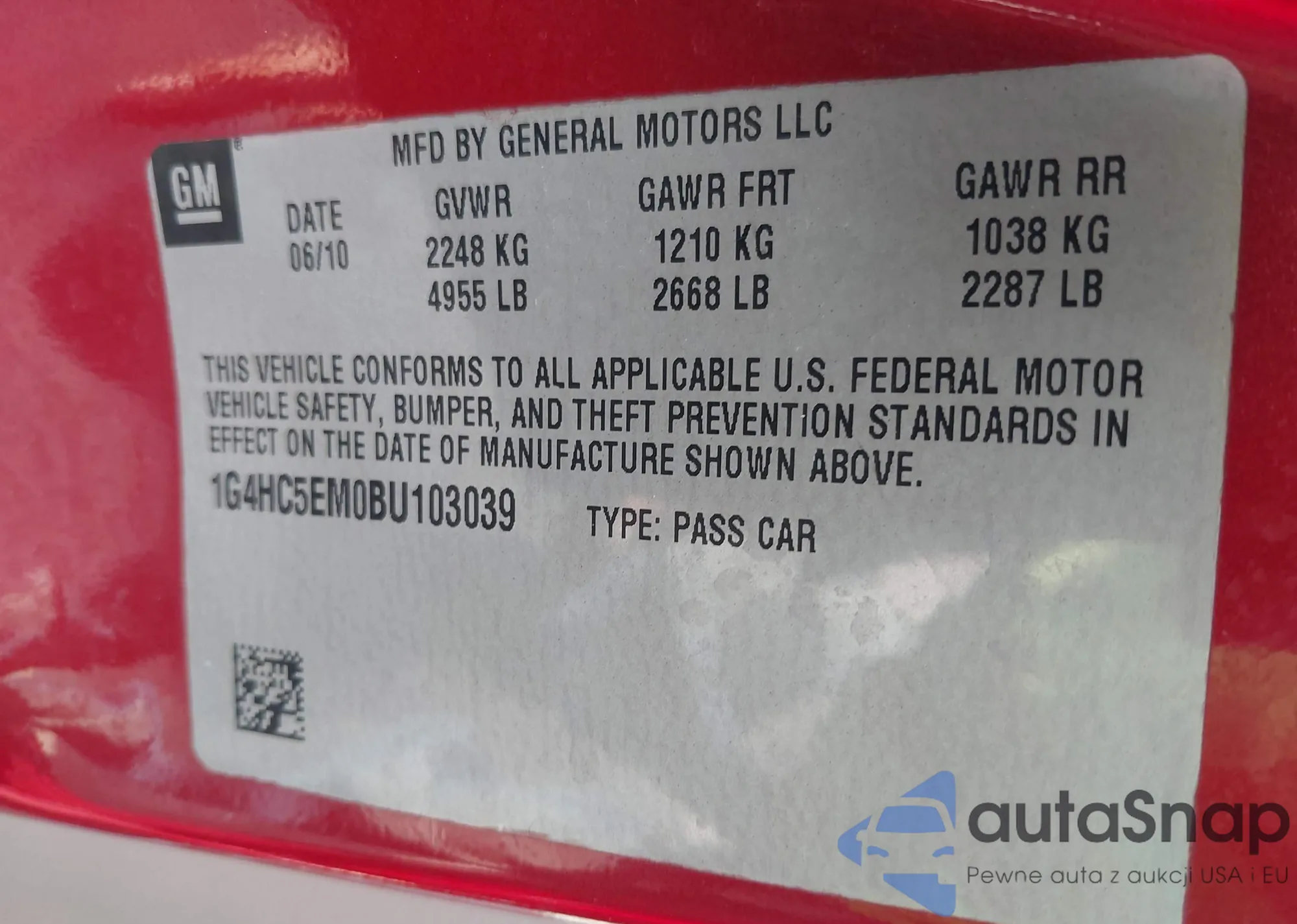 • VIN 1G4HC5EM0BU103039