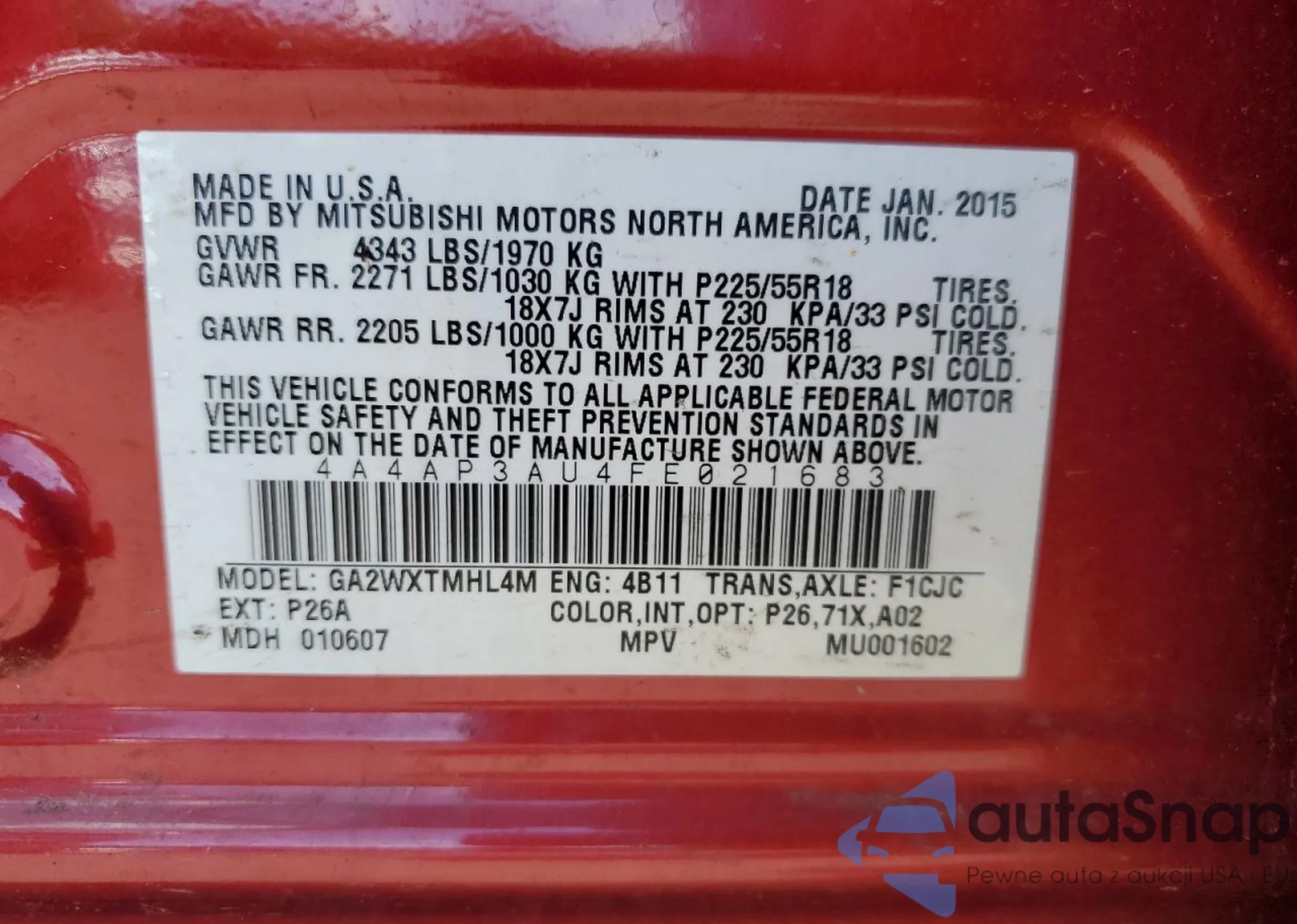 • VIN 4A4AP3AU4FE021683