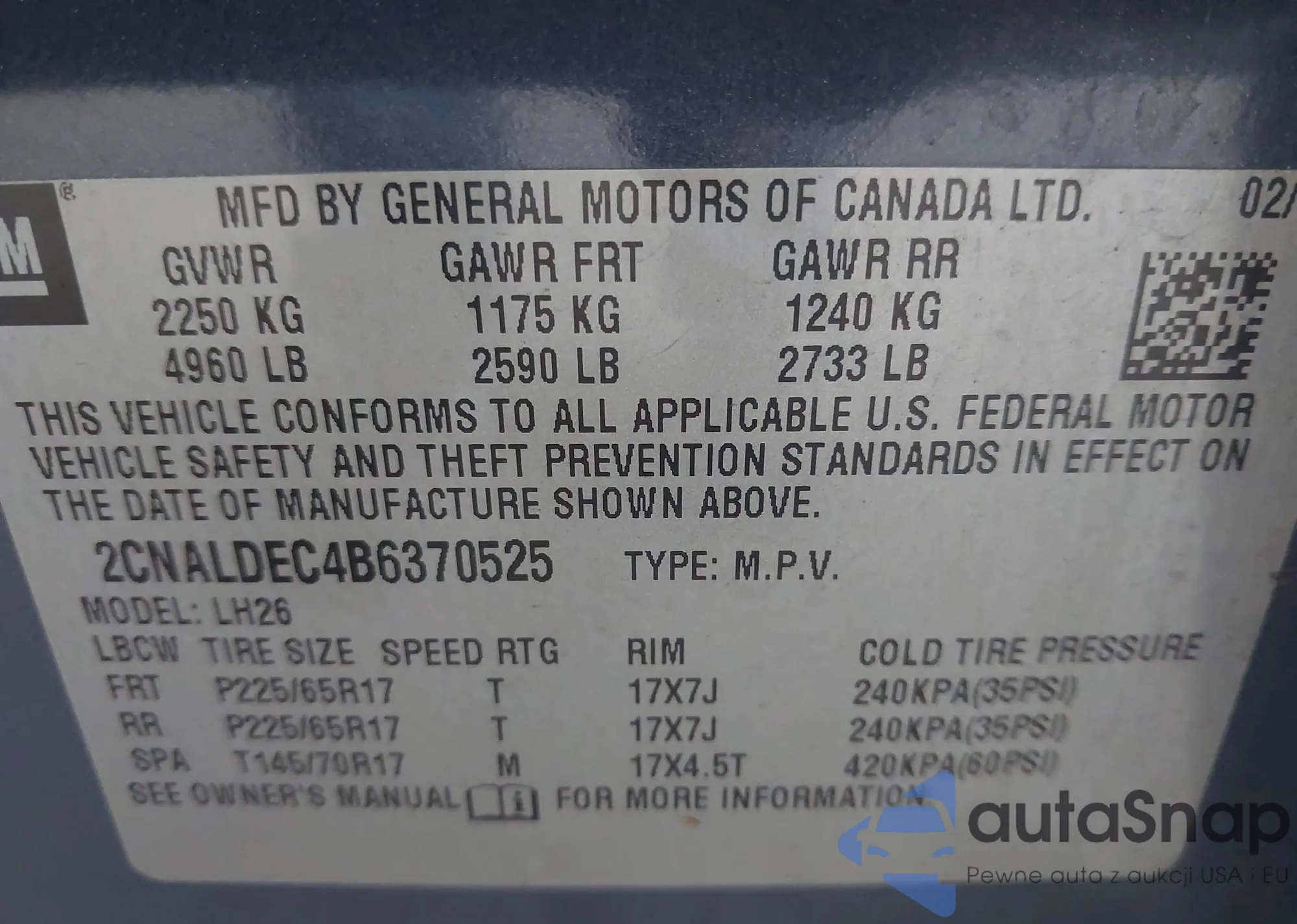 • VIN 2CNALDEC4B6370525