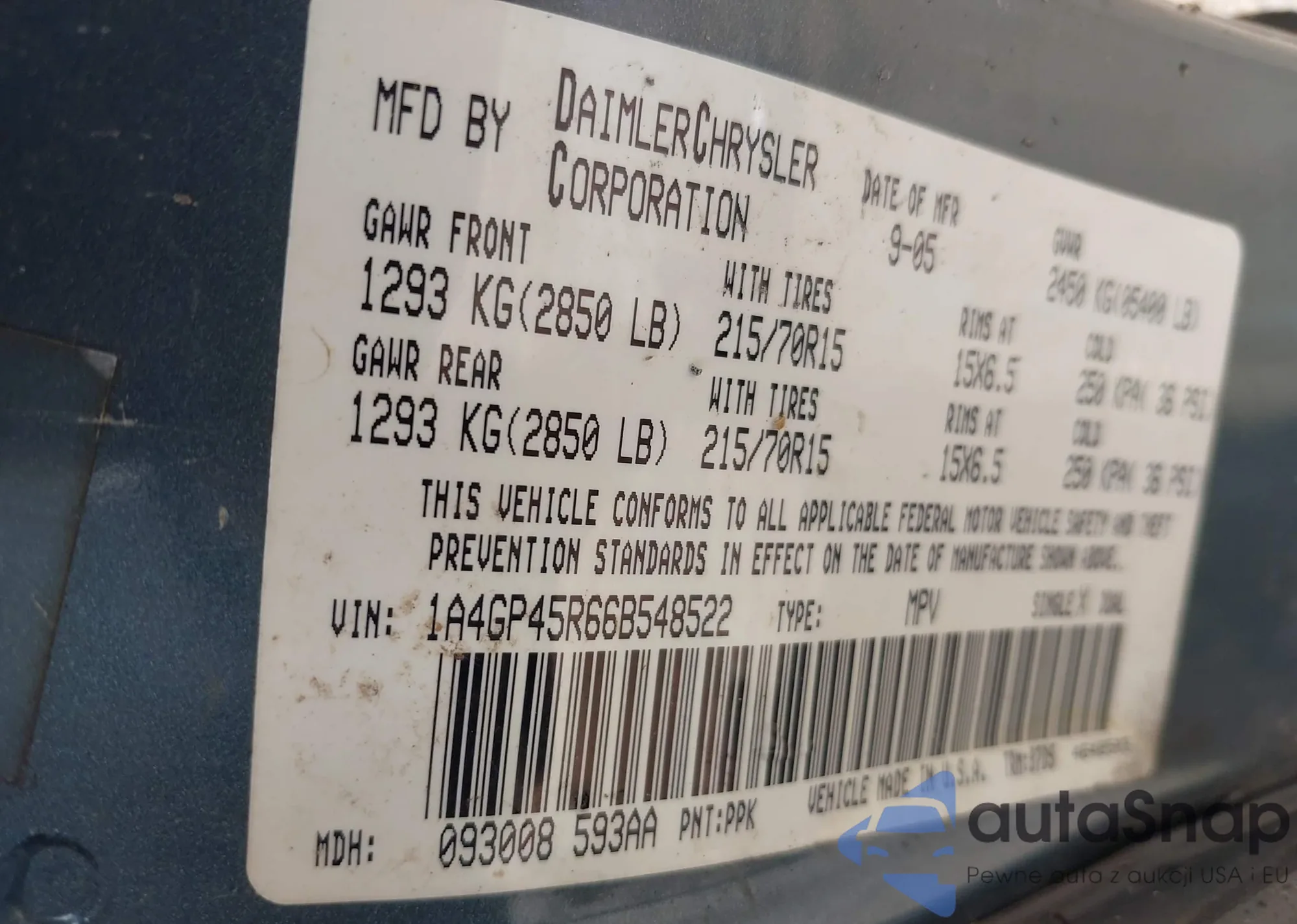 LOT: 43057080 VIN: 1A4GP45R66B548522
