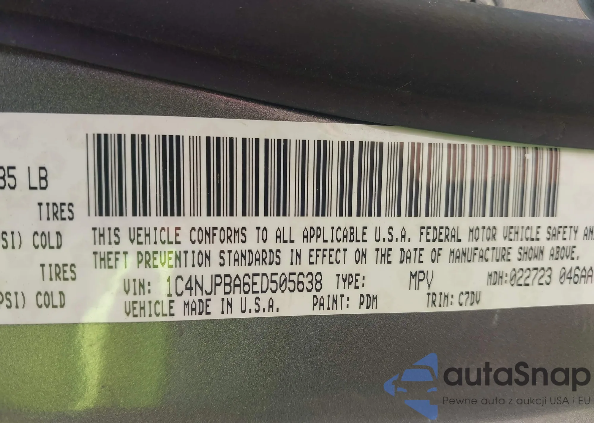 • VIN 3C4NJCCBXMT528185