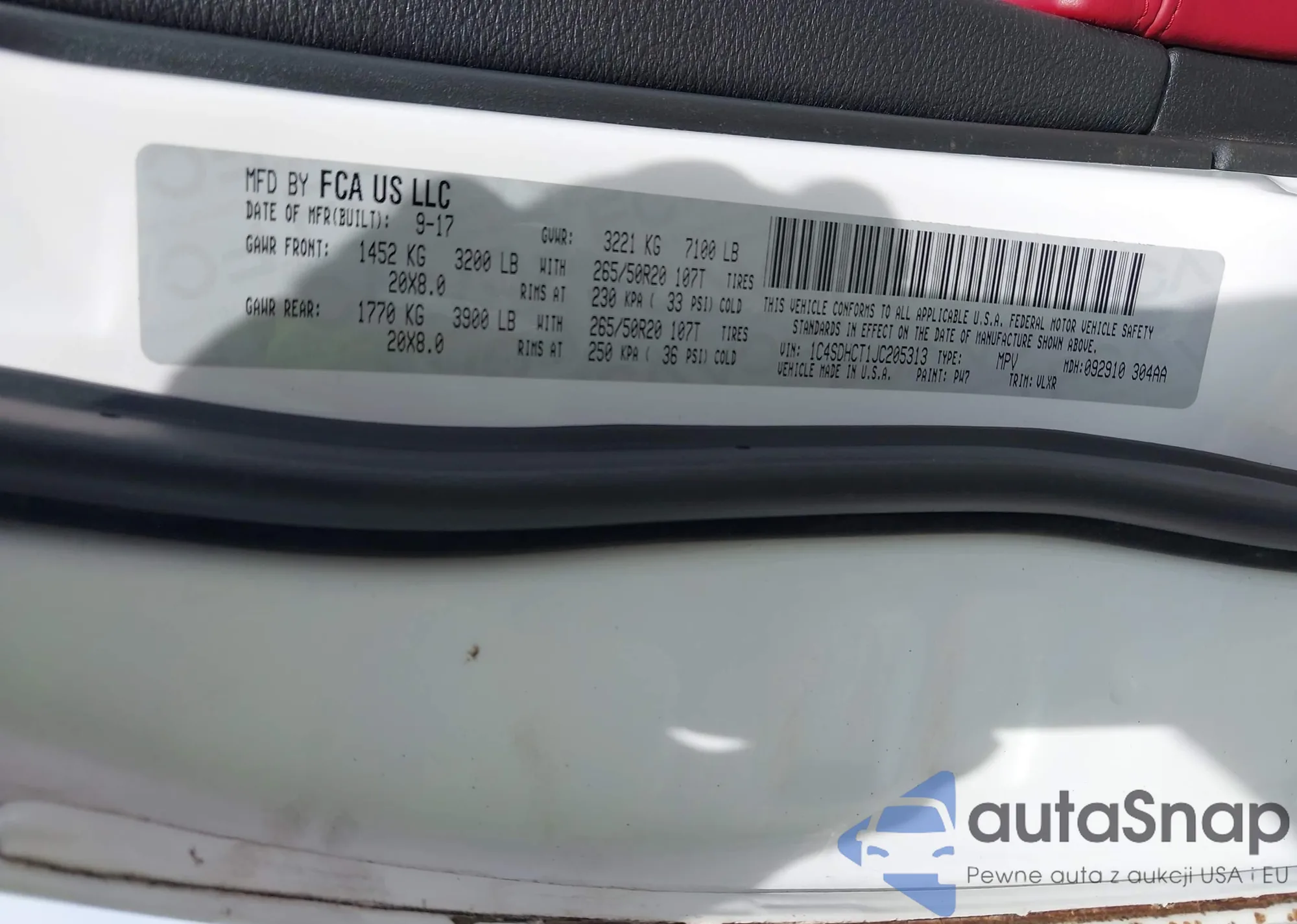 LOT: 43102738 VIN: 1C4SDHCT1JC205313