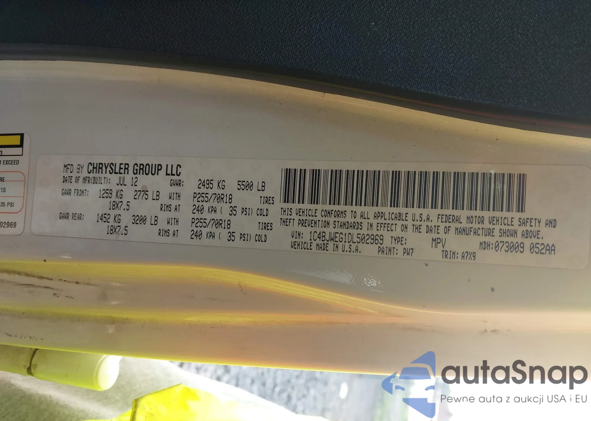 • VIN 1C4BJWEG1DL502969