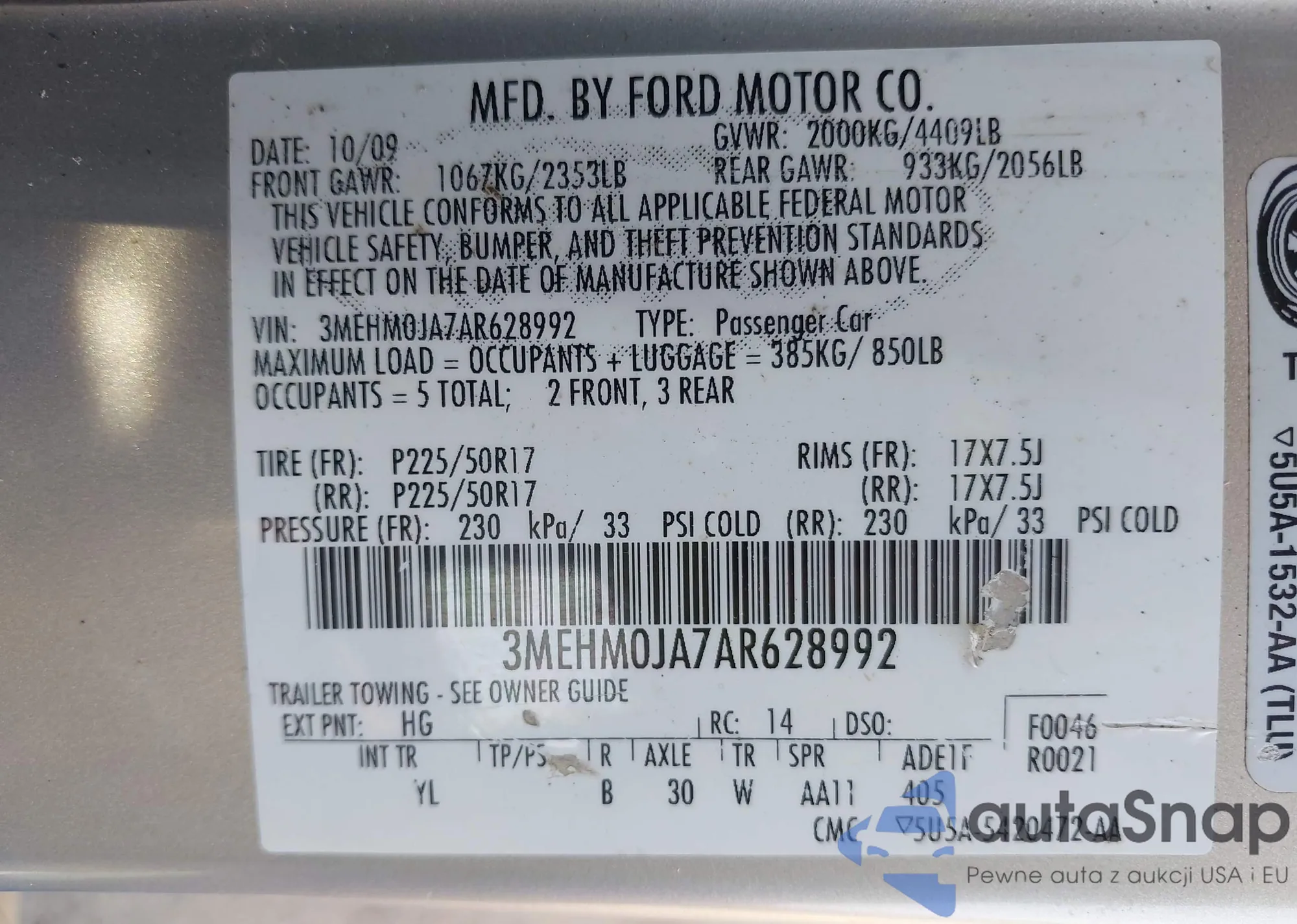 LOT: 43130867 VIN: 2FMEK63C69BA94059