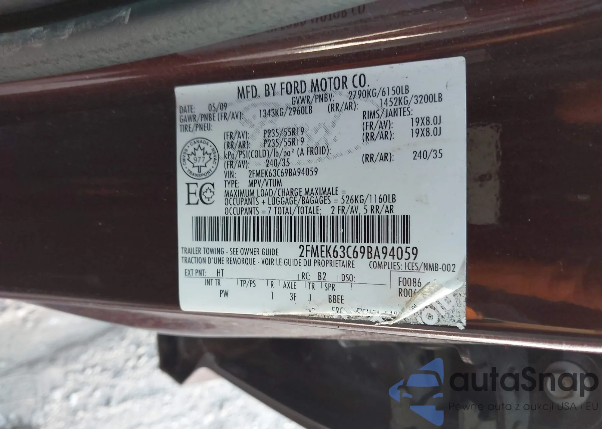 • VIN 2FMEK63C69BA94059