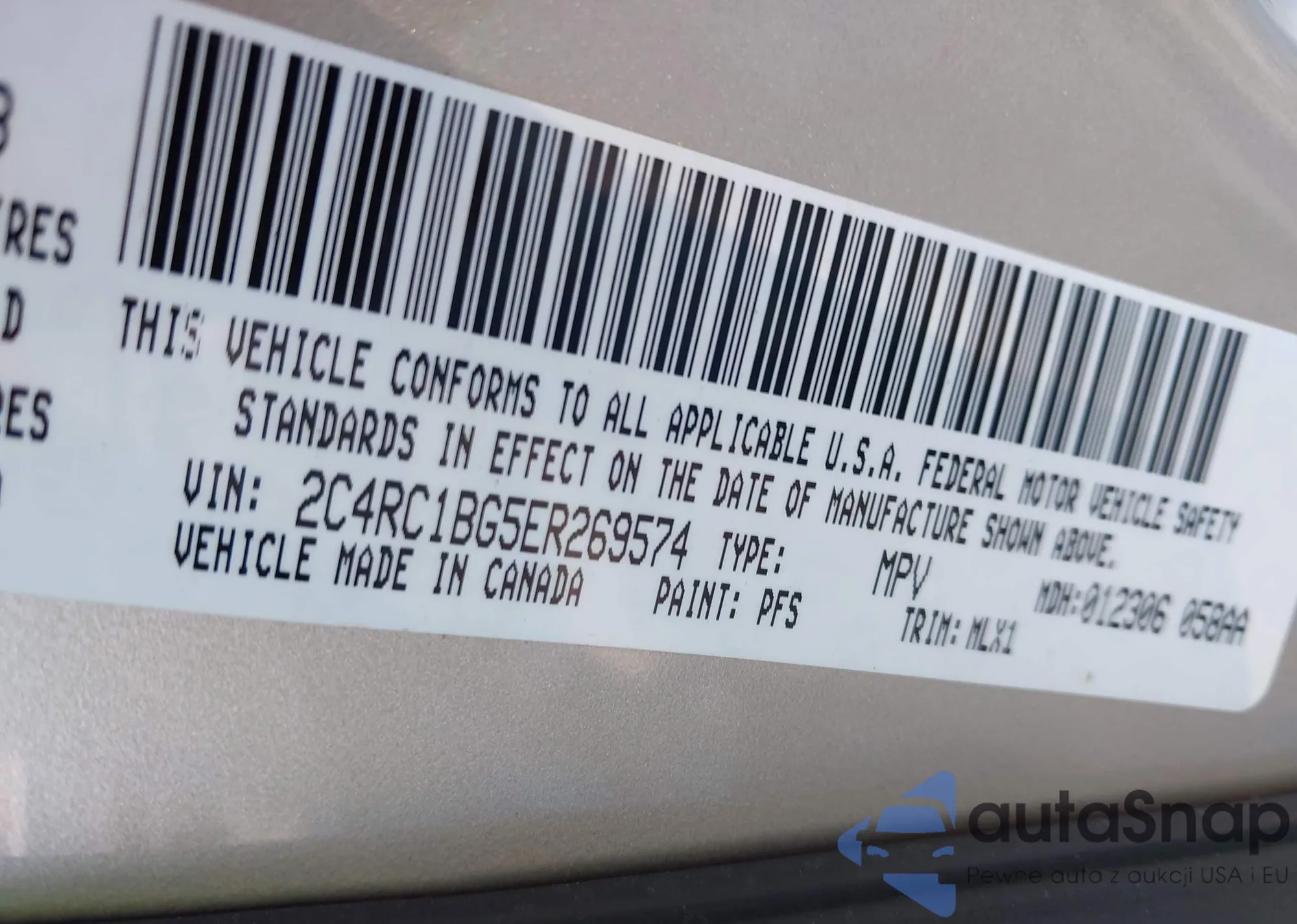 LOT: 43134239 VIN: 2C4RC1BG5ER269574