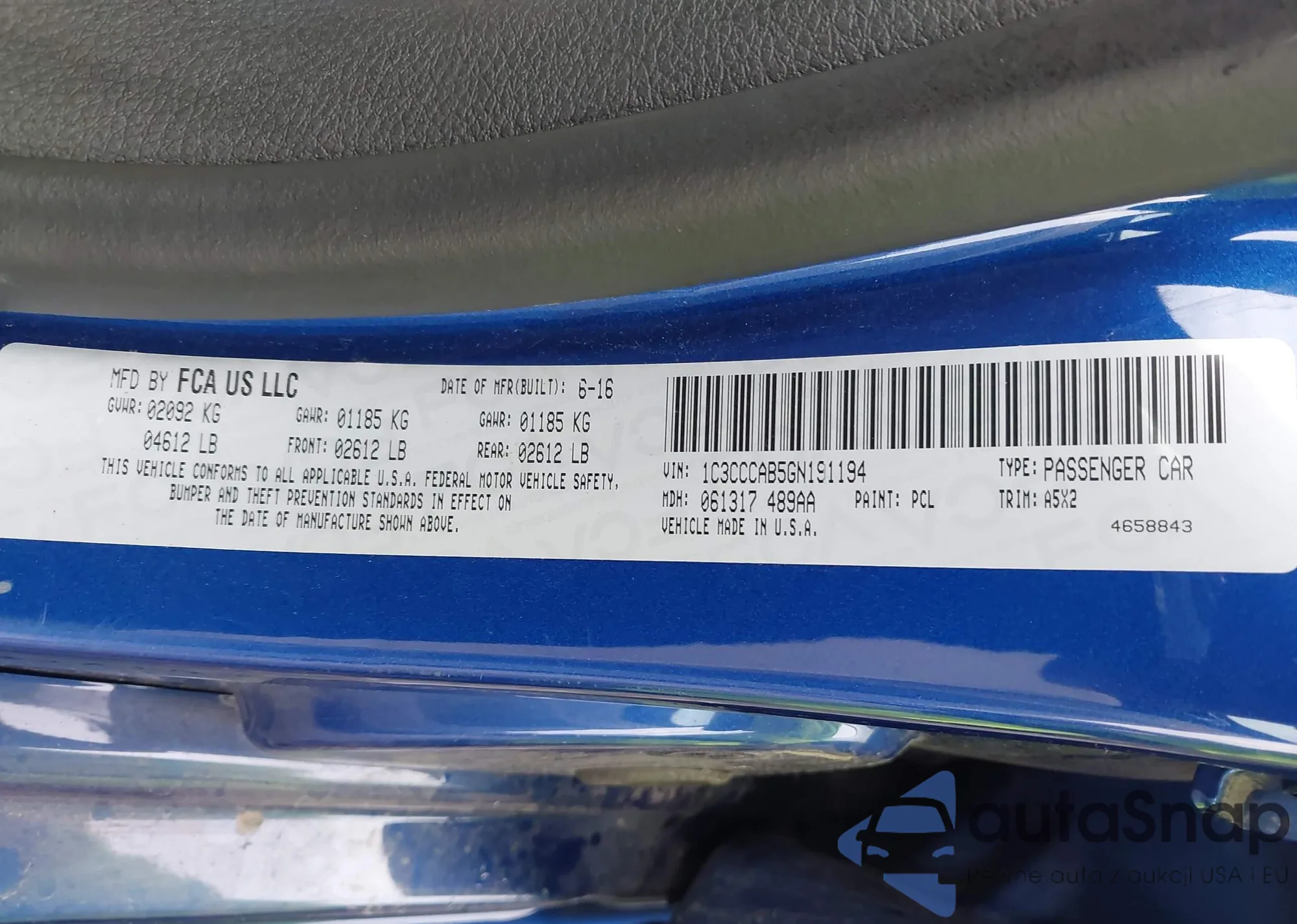 • VIN 1C3CCCAB5GN191194